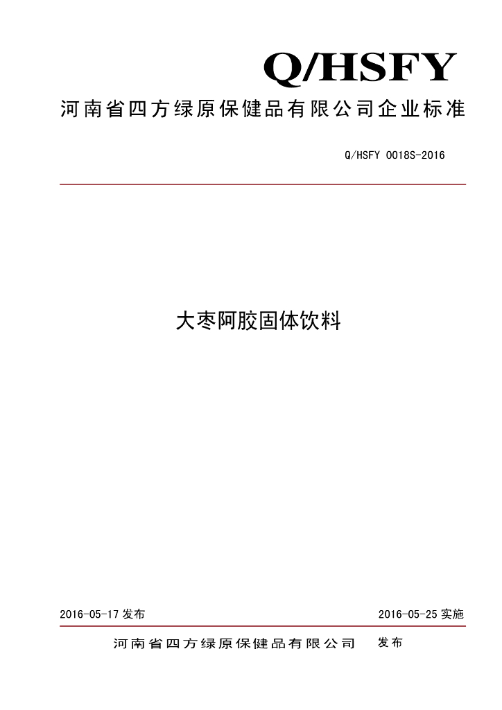 Q/HSFY 0018S-2016 河南省四方绿原保健品有限公司 大枣阿胶固体饮料