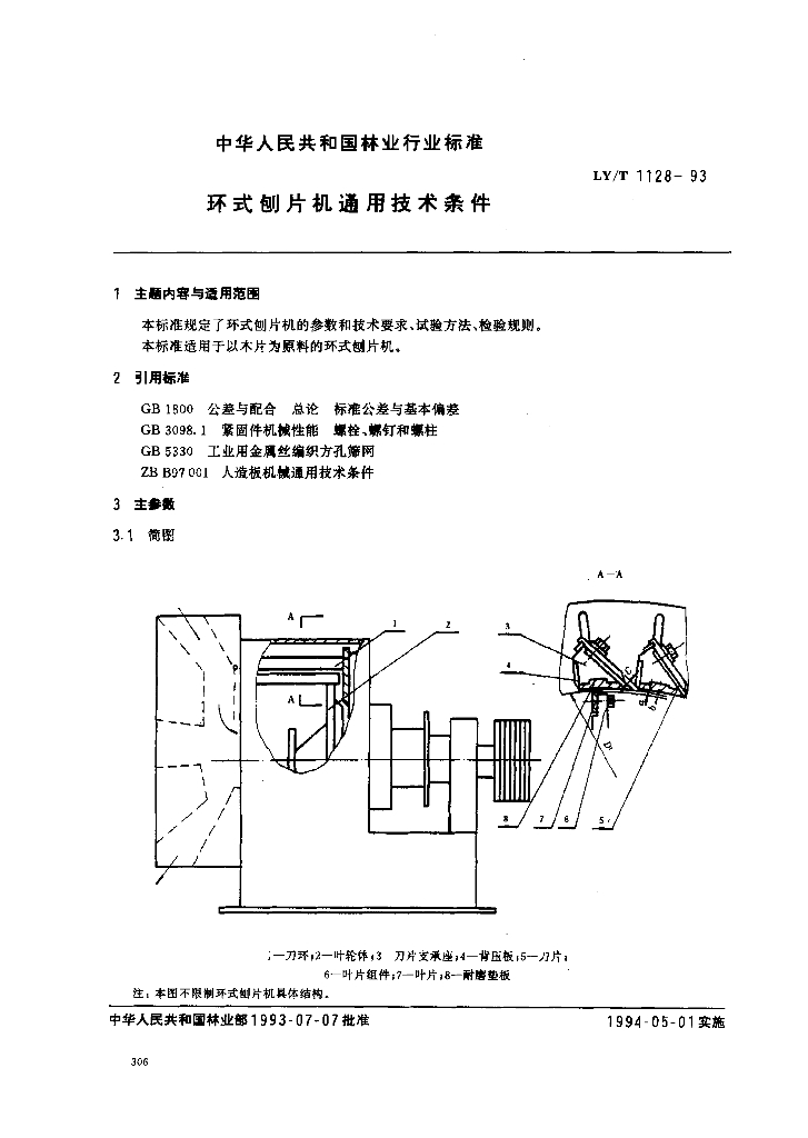LY/T 1128-1993 环式刨片机通用技术条件