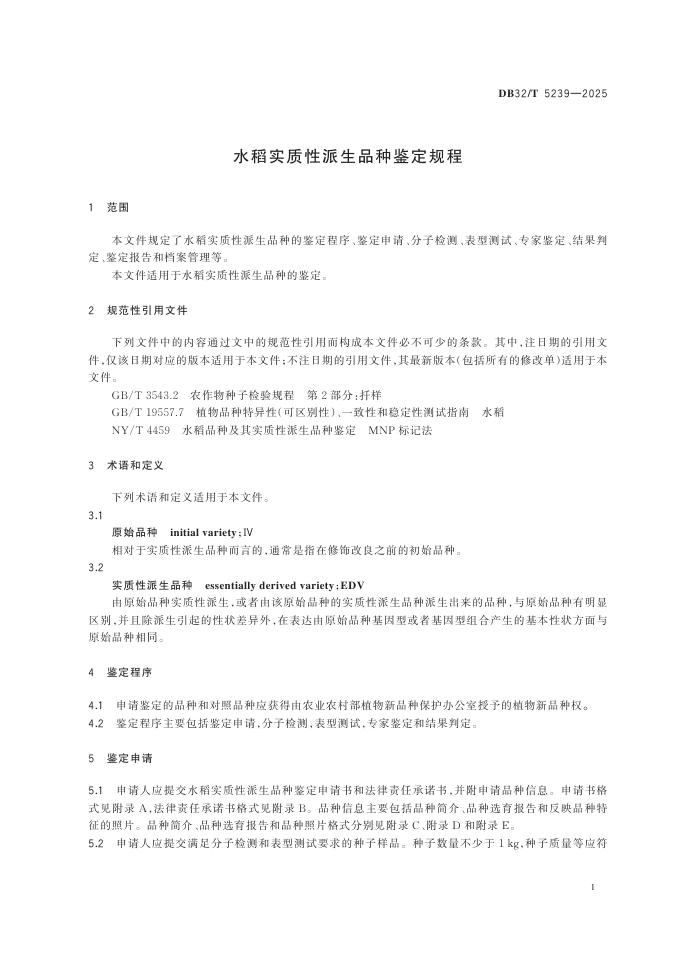 DB32/T 5239-2025 水稻实质性派生品种鉴定规程