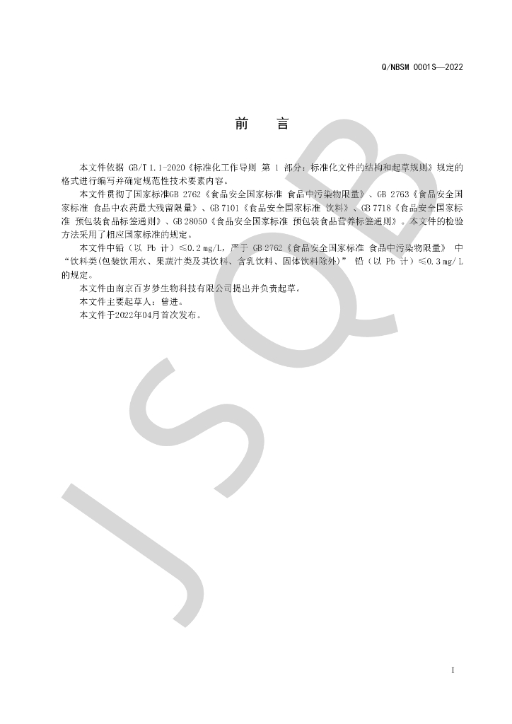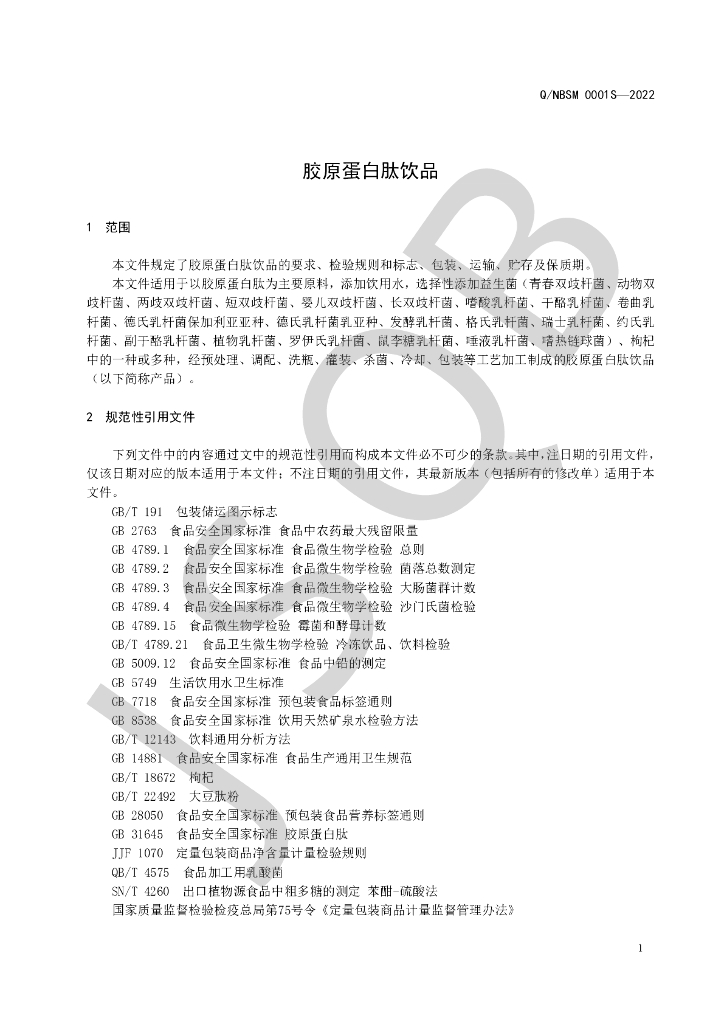Q/NBSM 0001S-2022 胶原蛋白肽饮品
