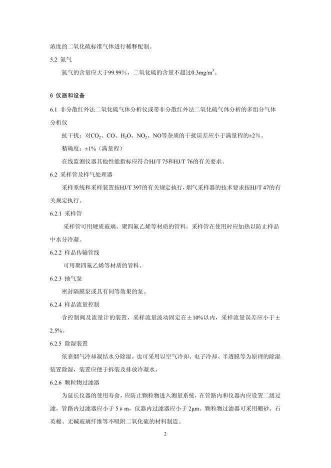 HJ 629-2011 固定污染源废气 二氧化硫的测定 非分散红外吸收法
