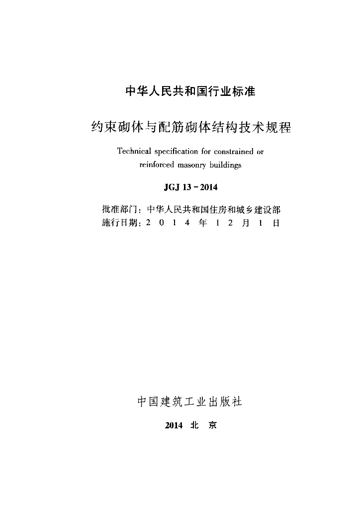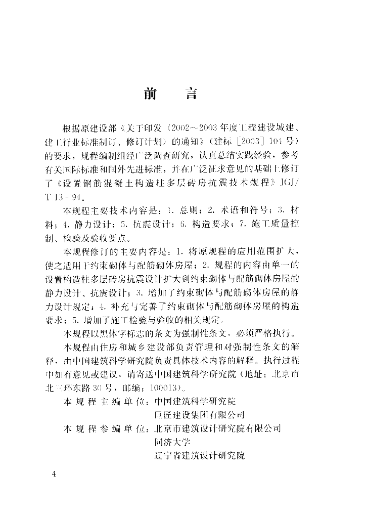 中国建筑科学研究院、同济大学、巨匠建设集团有限公司、北京市建筑设计研究院有限公司、同济大学、辽宁省建筑设计研究院、中国地震局工程力学研究所、浙江宝业建设集团有限公司、西部建筑抗震勘察设计研究院、昆明理工大学、北京市建设工程安全质量监督总站