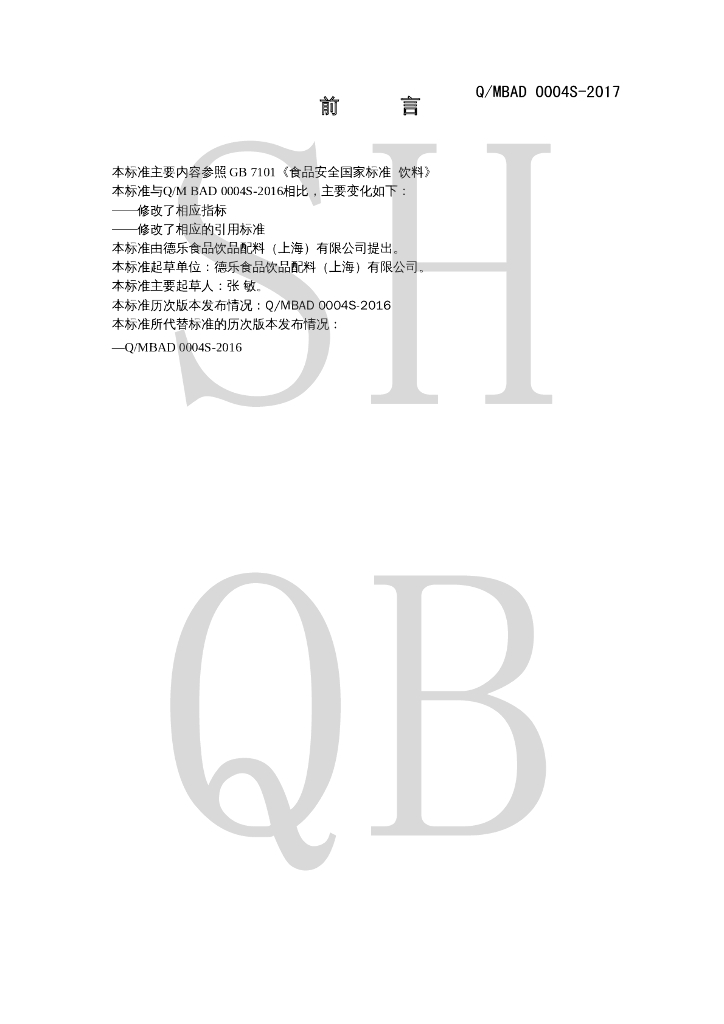 Q/MBAD 0004S-2017 碳酸饮料浓缩液