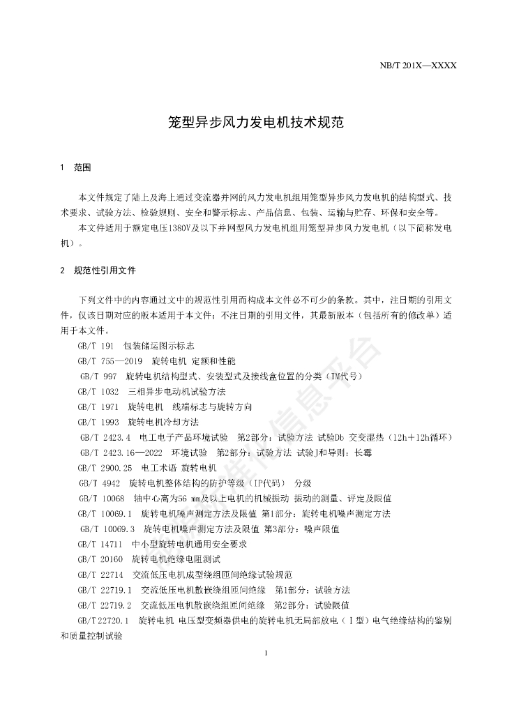 NB/T 11585-2024 笼型异步风力发电机技术规范
