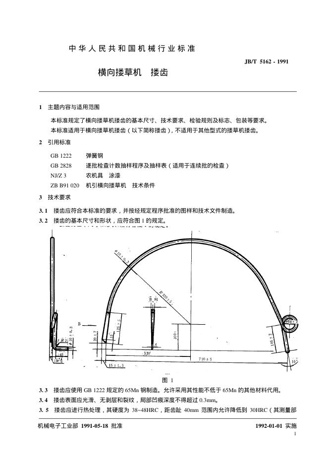 JB 5162-1991 横向搂草机搂齿
