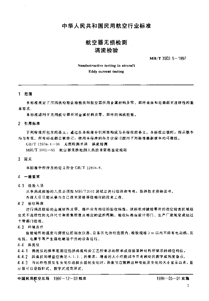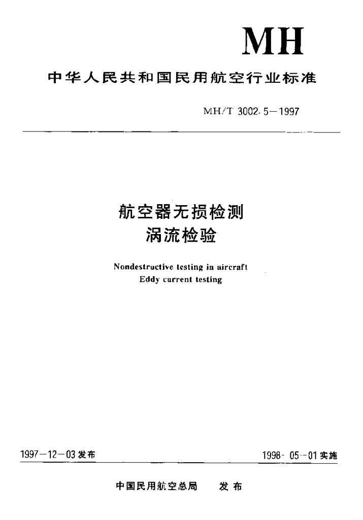MH/T 3002.5-1997 航空器无损检测涡流检验