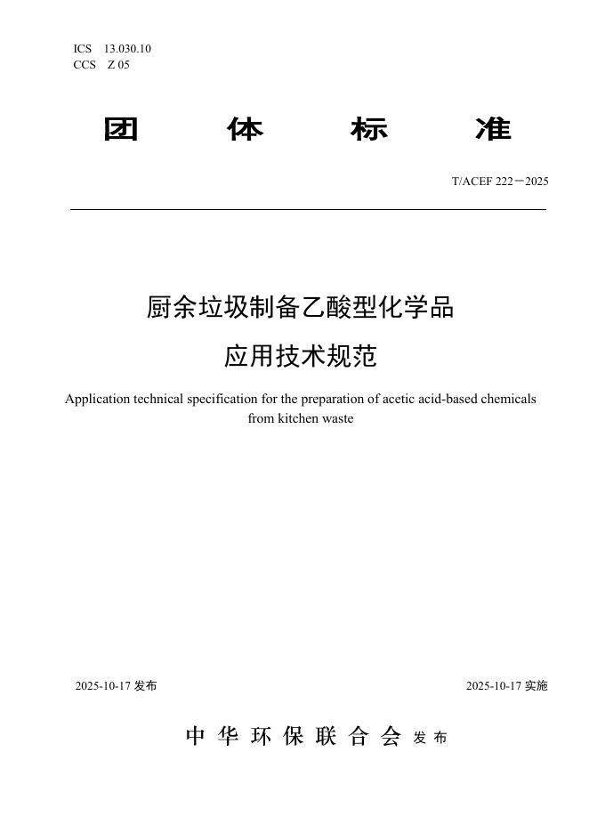 T/ACEF 222-2025 厨余垃圾制备乙酸型化学品应用技术规范