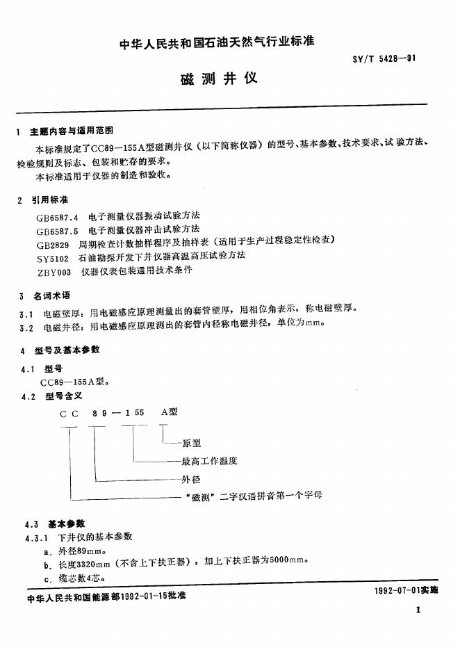 SY/T 5428-1991 磁测井仪