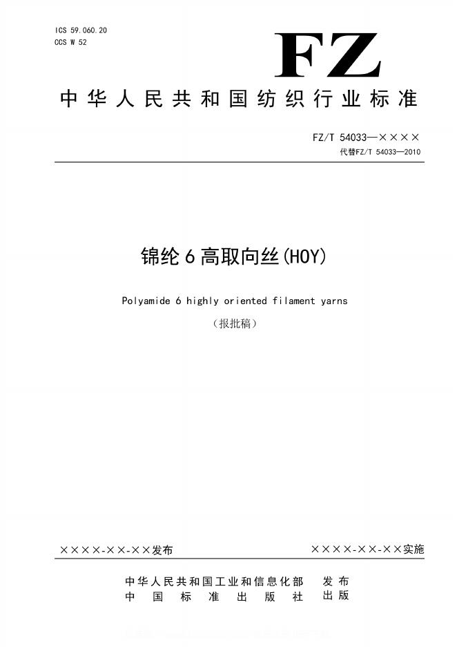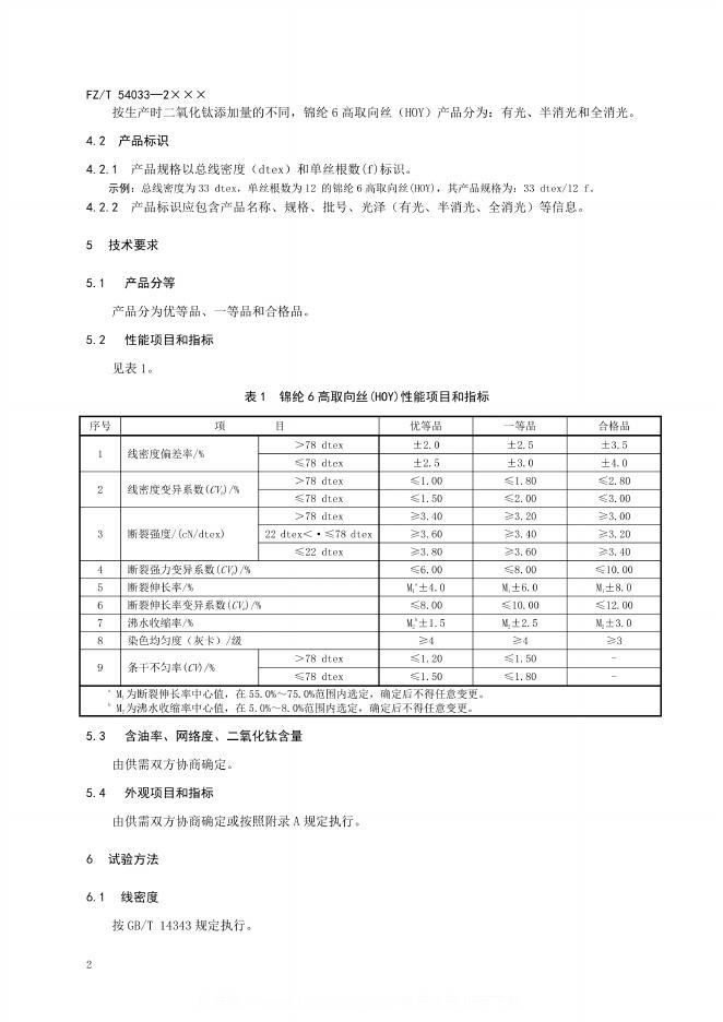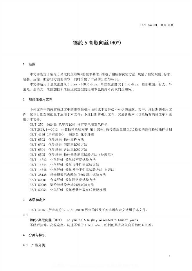 FZ/T 54033-2023 锦纶6高取向丝HOY