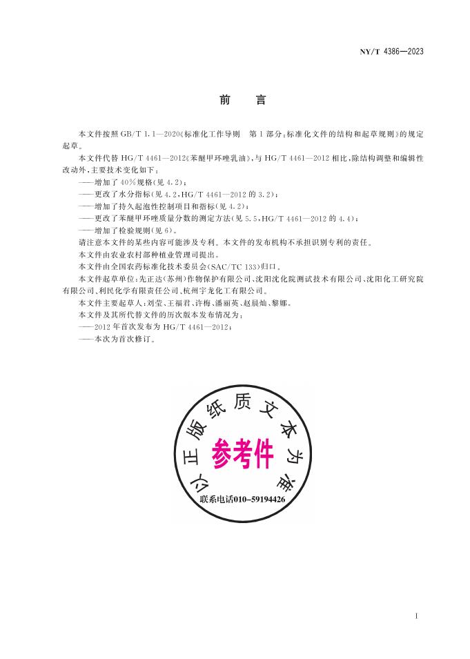 先正达(苏州)作物保护有限公司、沈阳沈化院测试技术有限公司、沈阳化工研究院有限公司、利民化学有限责任公司、杭州宇龙化工有限公司