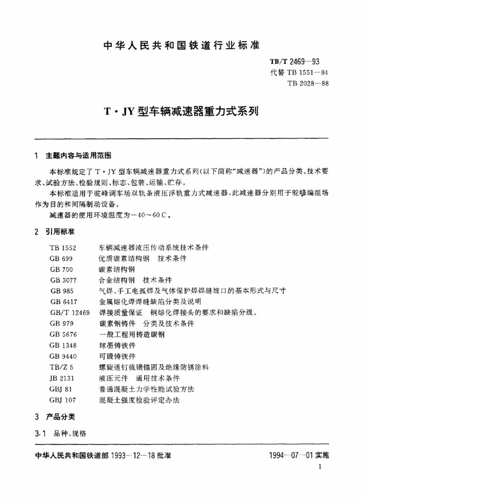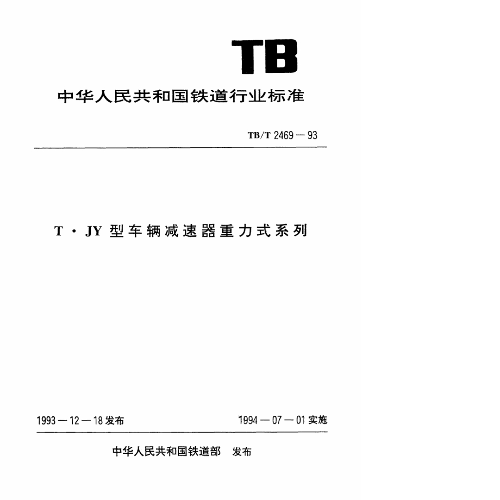 TB/T 2469-1993 T●JY型车辆减速器重力式系列