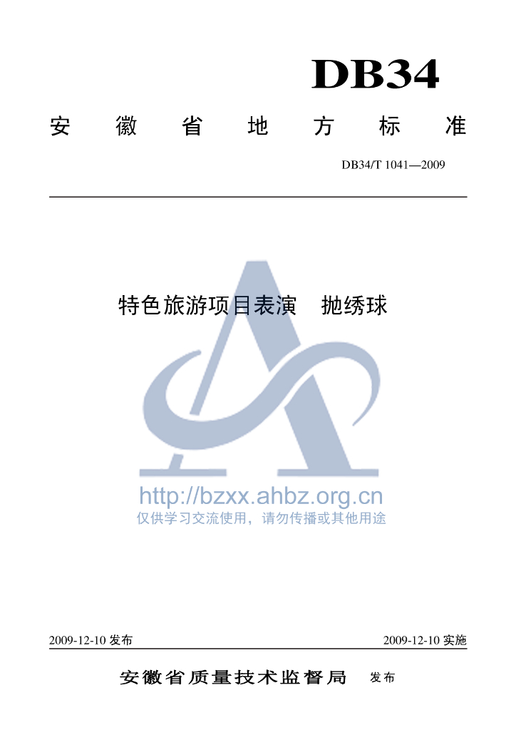 DB34/T 1041-2009 特色旅游项目表演 抛绣球