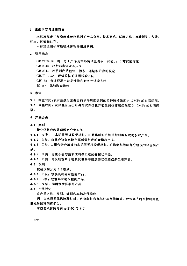 JC/T 547-1994 陶瓷墙地砖胶粘剂