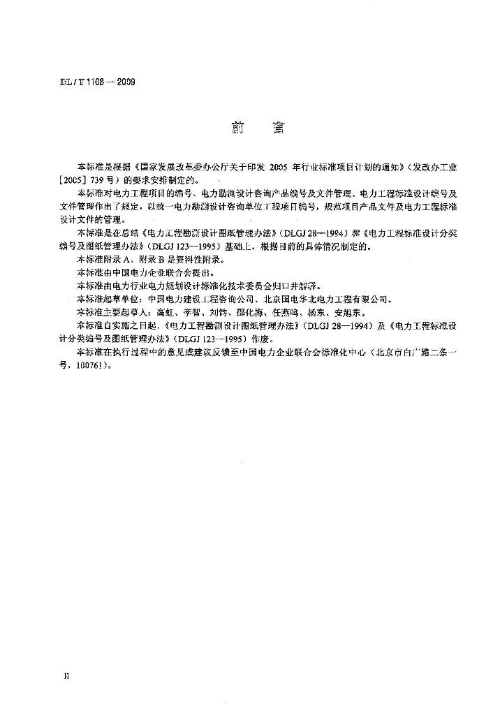 DL/T 1108-2009 电力工程项目编号及产品文件管理规定