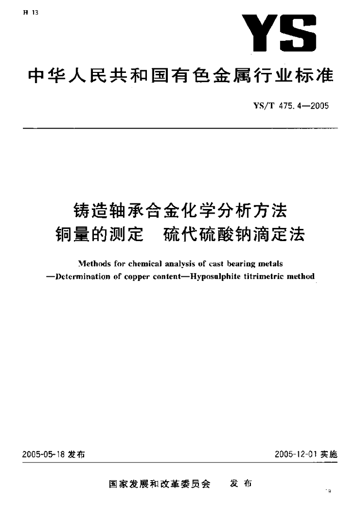 YS/T 475.4-2005 铸造轴承合金化学分析方法铜量的测定硫代硫酸钠滴定法