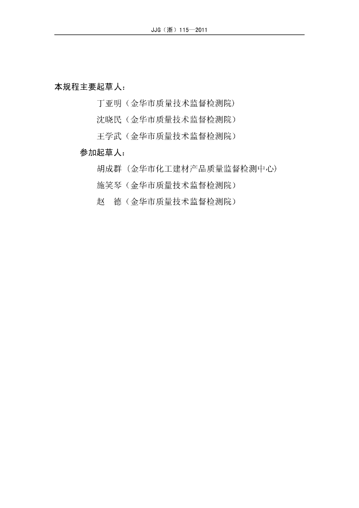 丁亚明(金华市质量技术监督检测院)、沈晓民(金华市质量技术监督检测院)、王学武(金华市质量技术监督检测院)、胡成群(金华市化工建材产品质量监督检测中心)、施笑琴(金华市质量技术监督检测院)、赵德(金华市质量技术监督检测院)
