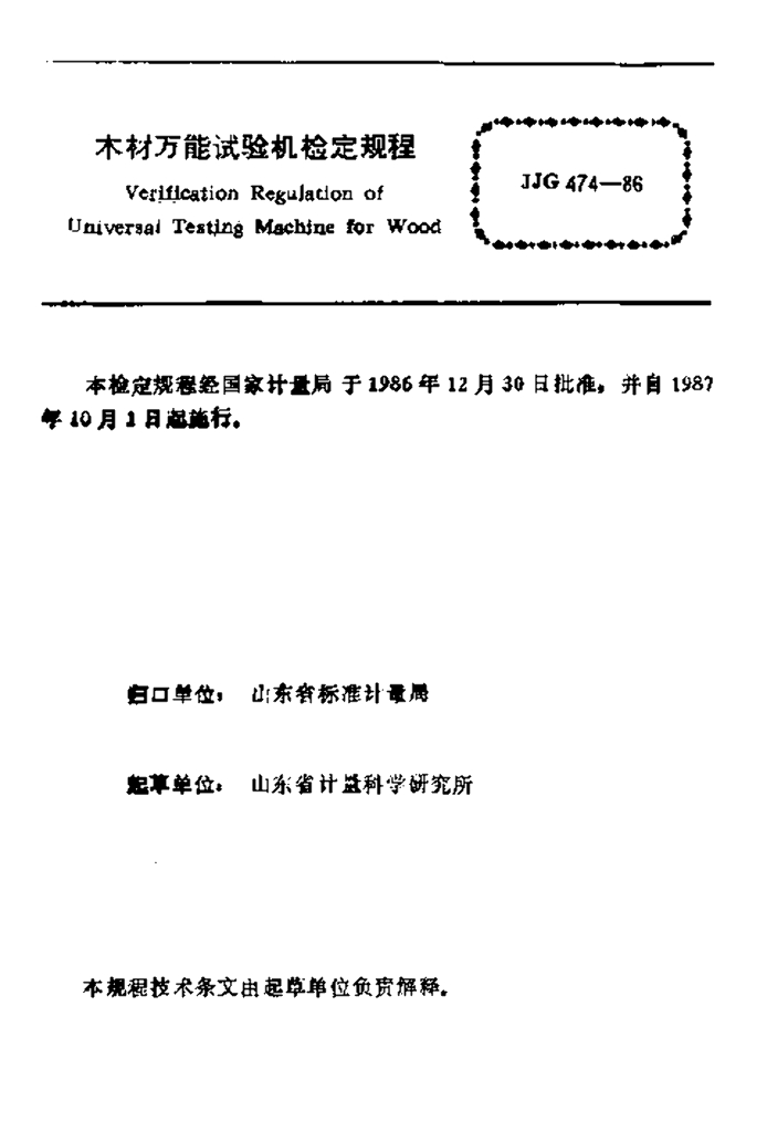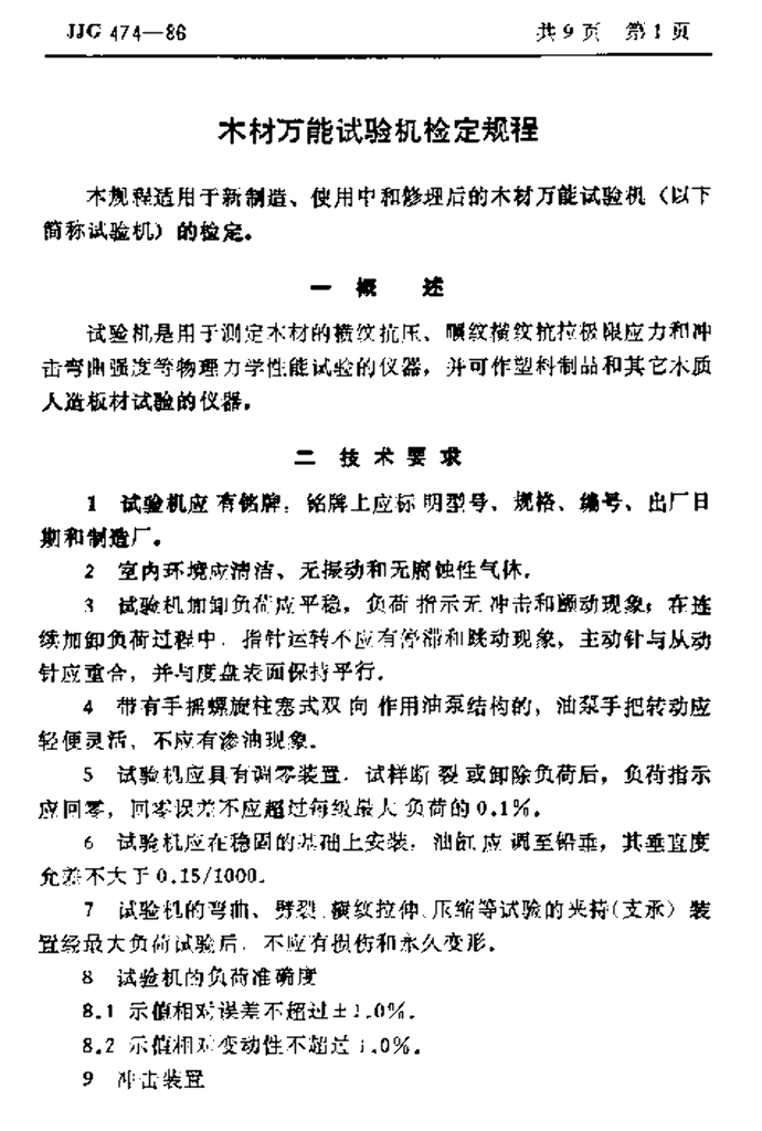 JJG 474-1986 木材万能试验机检定规程