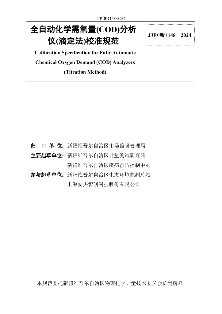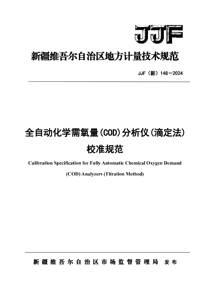 JJF(新)148-2024 全自动化学需氧量(COD)分析仪(滴定法)校准规范