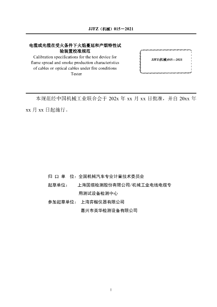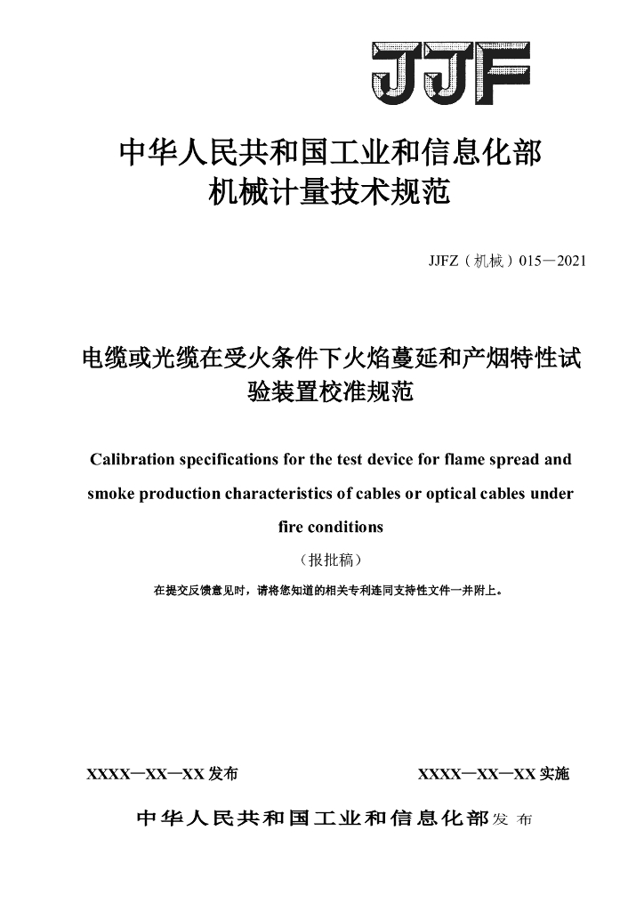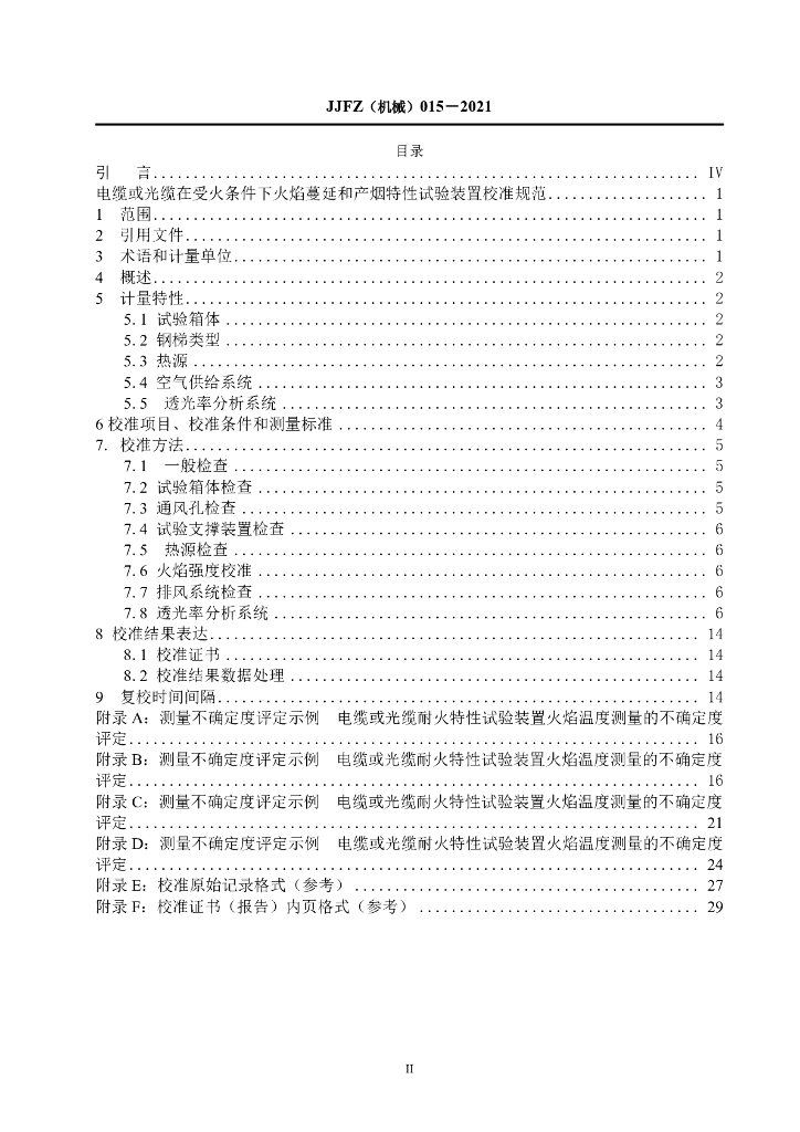JJF(机械)1116-2023 电缆或光缆在受火条件下火焰蔓延和产烟特性试验装置校准规范(报批稿)