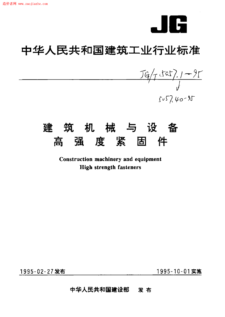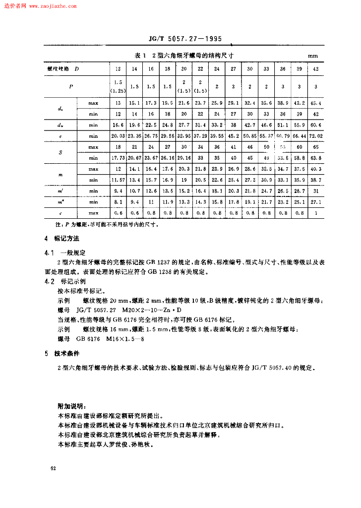 JG/T 5057.27-1995 建筑机械与设高强度2型六角螺 细牙规范