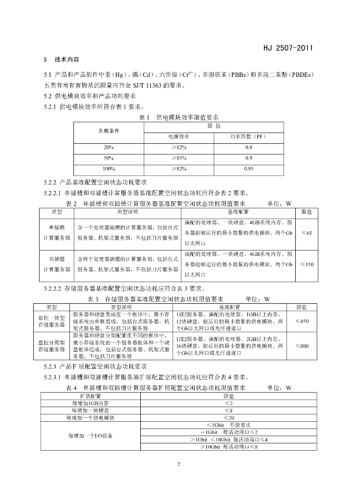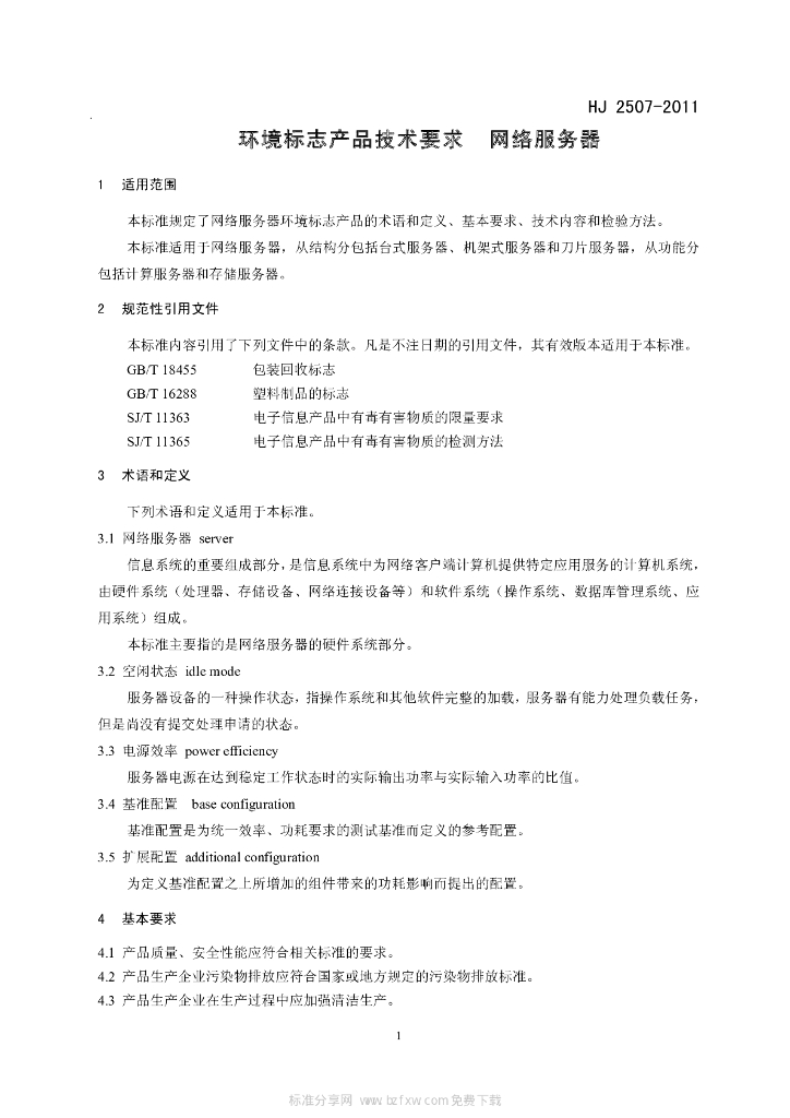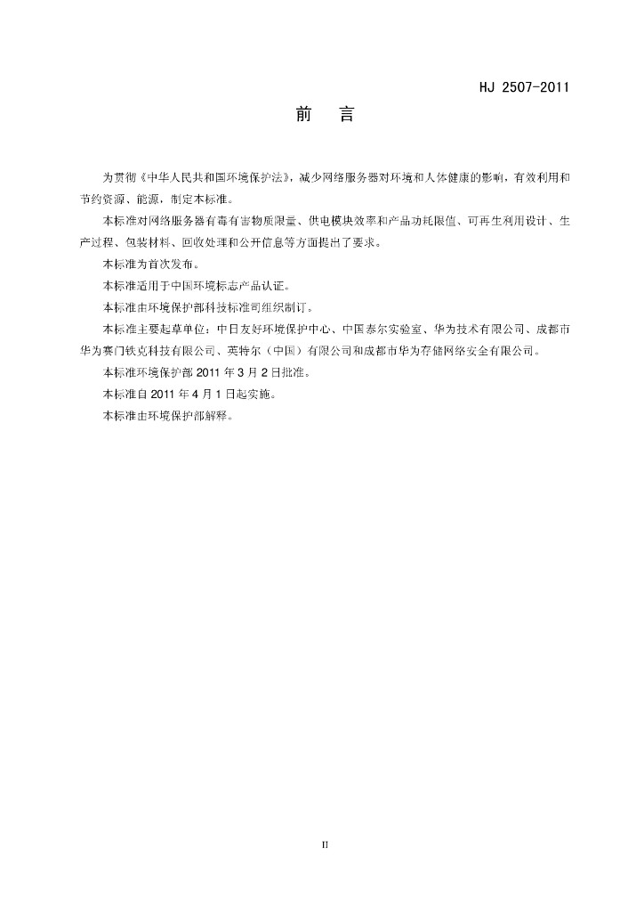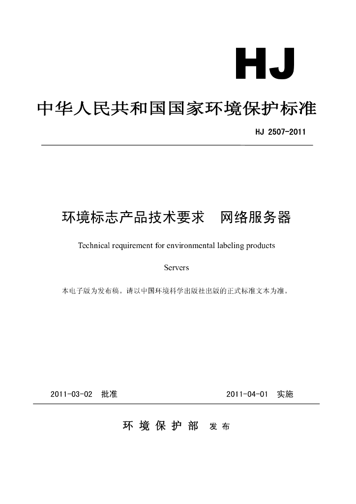 HJ 2507-2011 环境标志产品技术要求 网络服务器