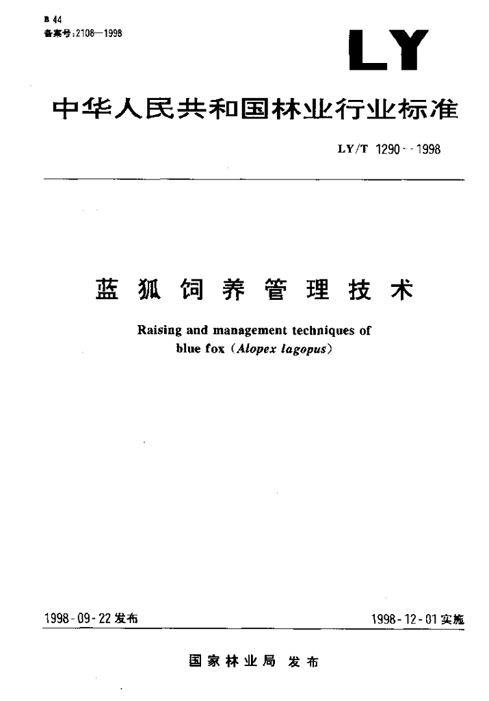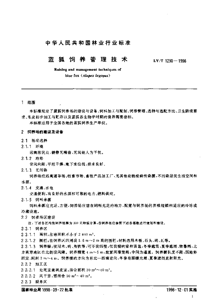 LY/T 1290-1998 蓝狐饲养管理技术