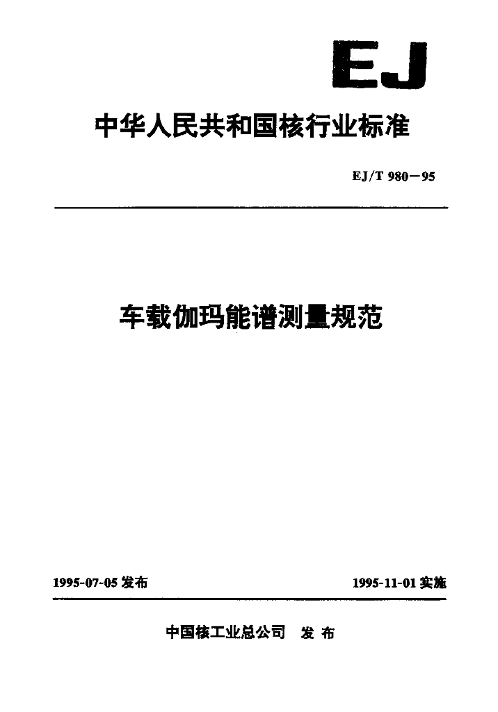 EJ/T 980-1995 车载伽玛能谱测量规范