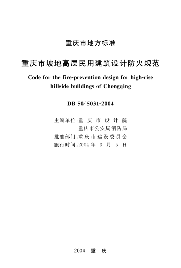 DB50/5031-2004 重庆市坡地高层民用建筑设计防火规范