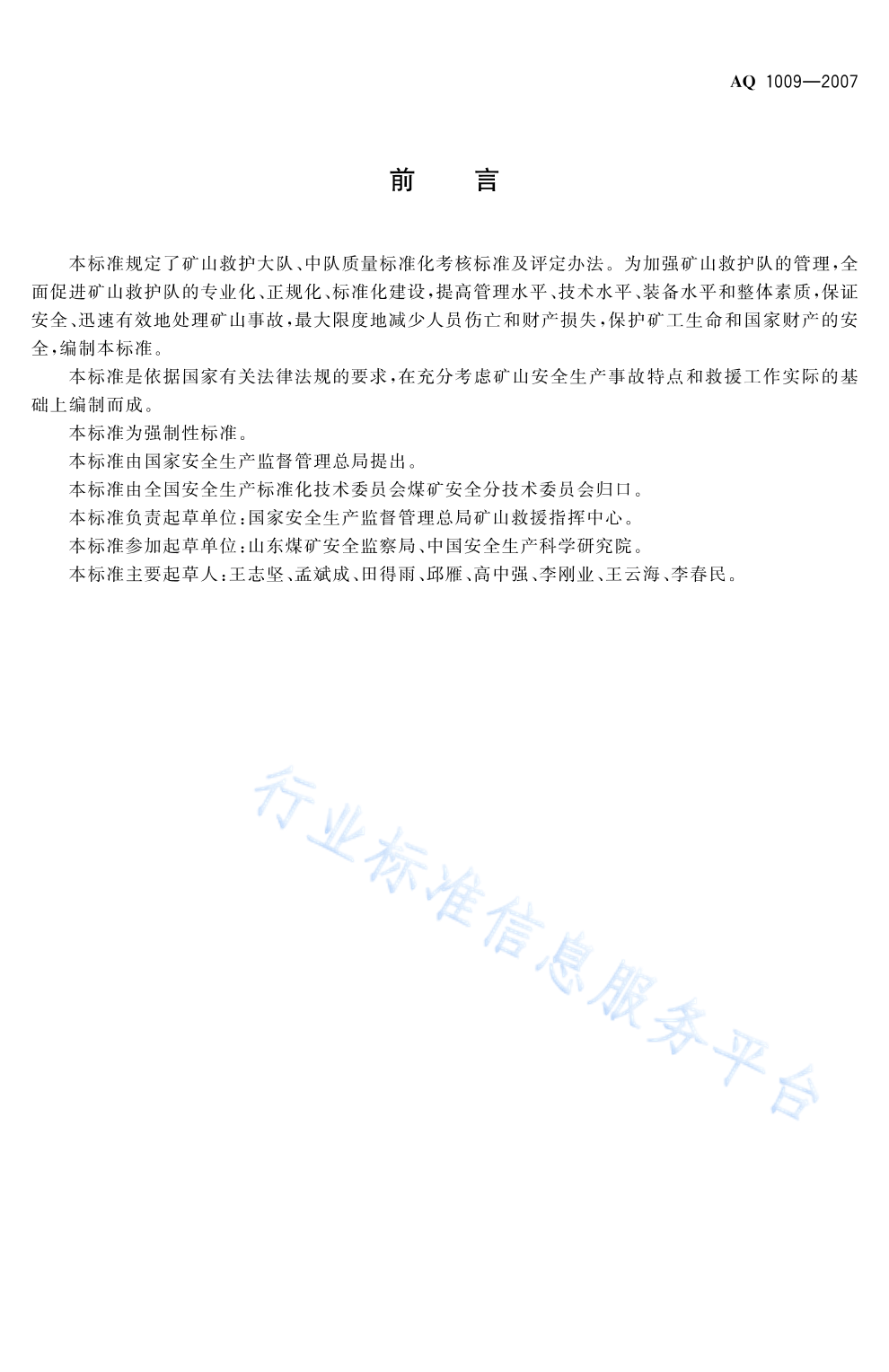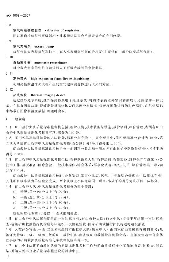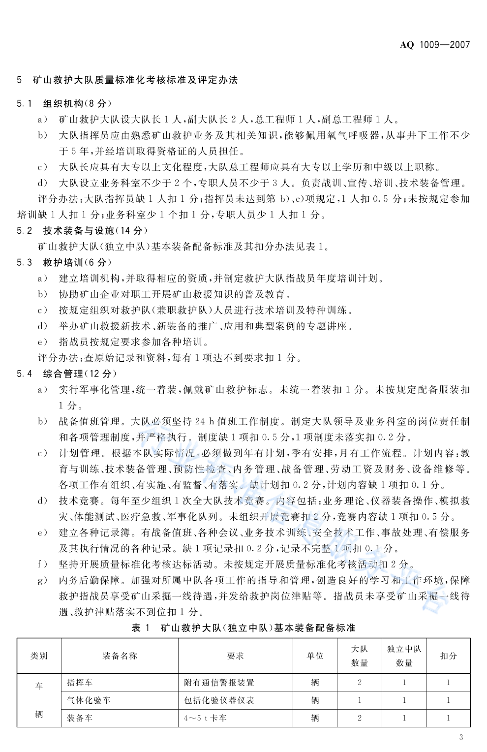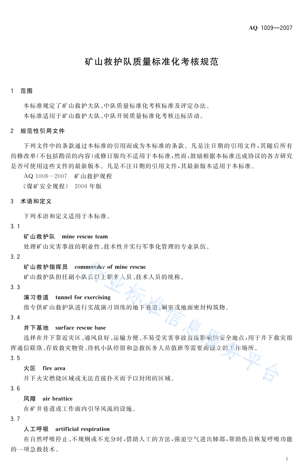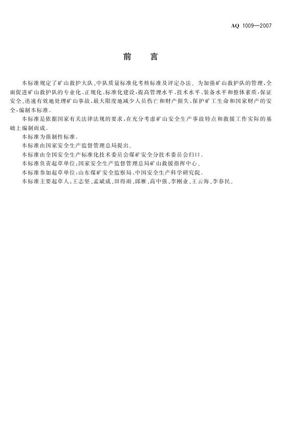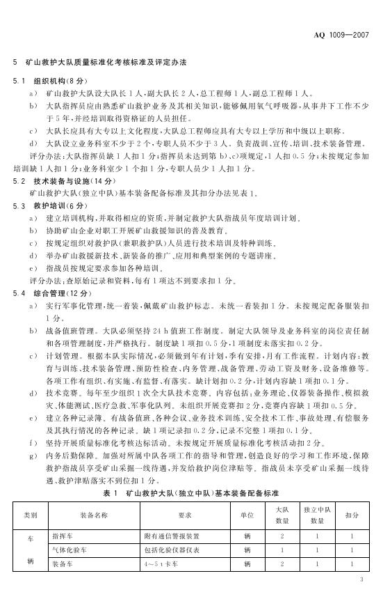 AQ/T 1009-2007 矿山救护队质量标准化考核规范
