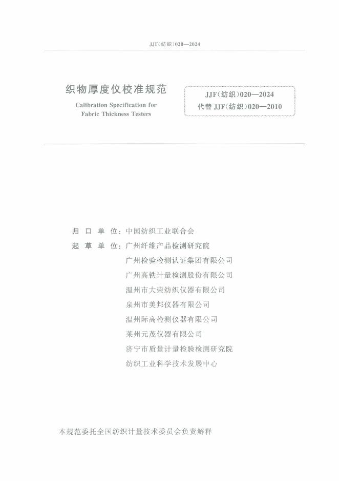 JJF(纺织)020-2024 织物厚度仪校准规范