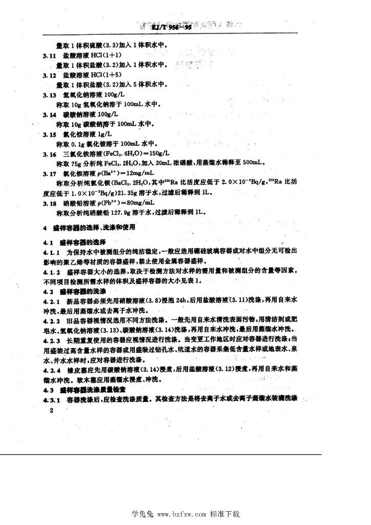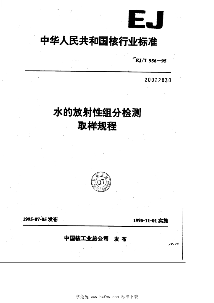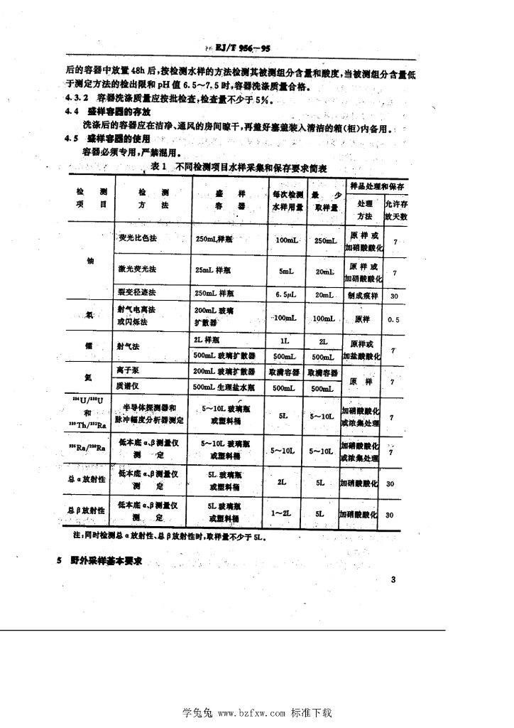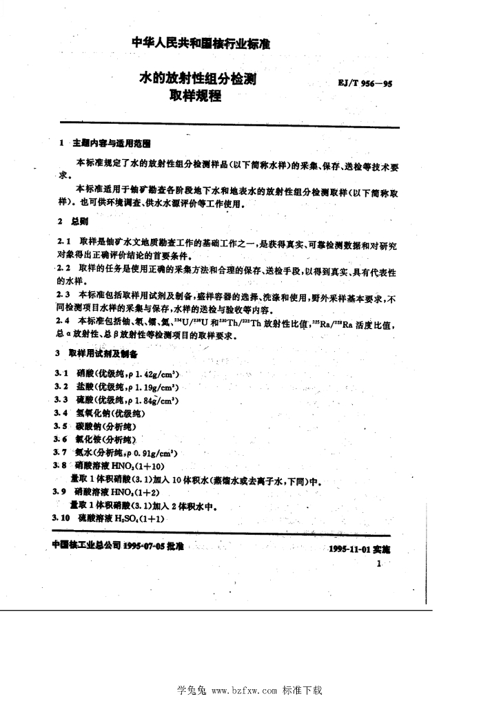 EJ/T 956-1995 水的放射性驵分检测 取样规程