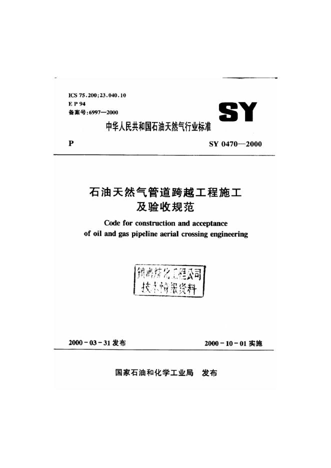 SY 4070-1993 石油天然气管道跨越工程施工及验收规范
