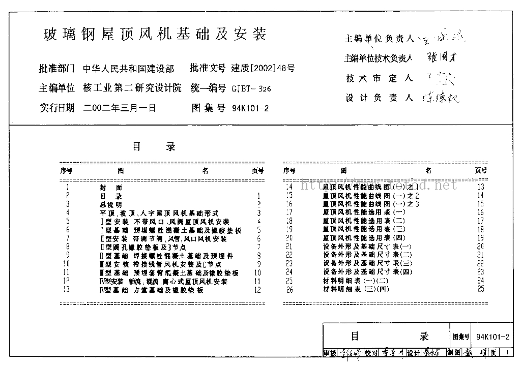 94K101-2 玻璃钢屋顶风机基础及安装图集