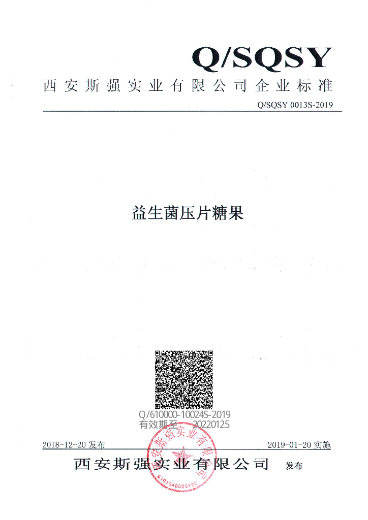Q/SQSY 0013S-2019 益生菌压片糖果