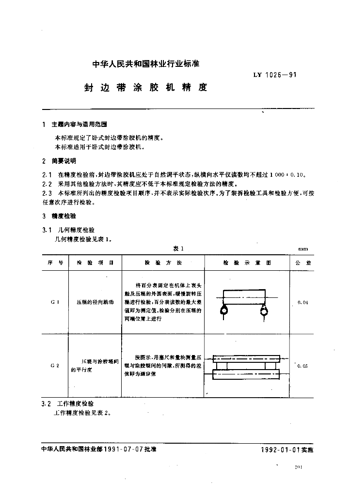 LY 1026-1991 封边带涂胶机精度