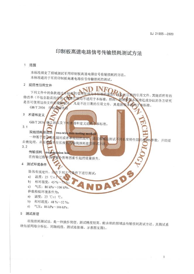 SJ 21555-2020 印制板高速电路信号传输损耗测试方法