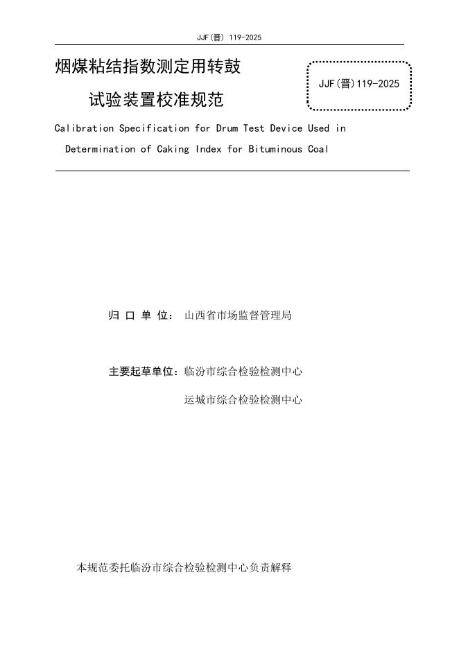JJF(晋)119-2025 烟煤粘结指数测定用转鼓试验装置校准规范