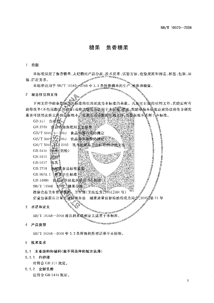 SB/T 10020-2008 糖果 焦香糖果