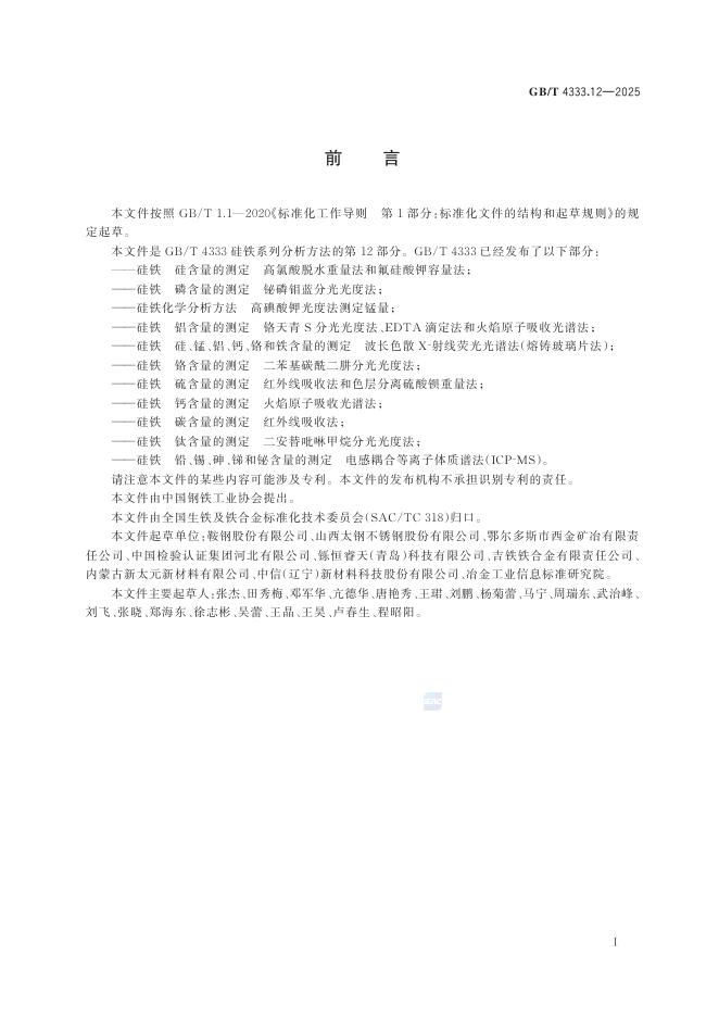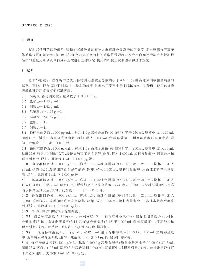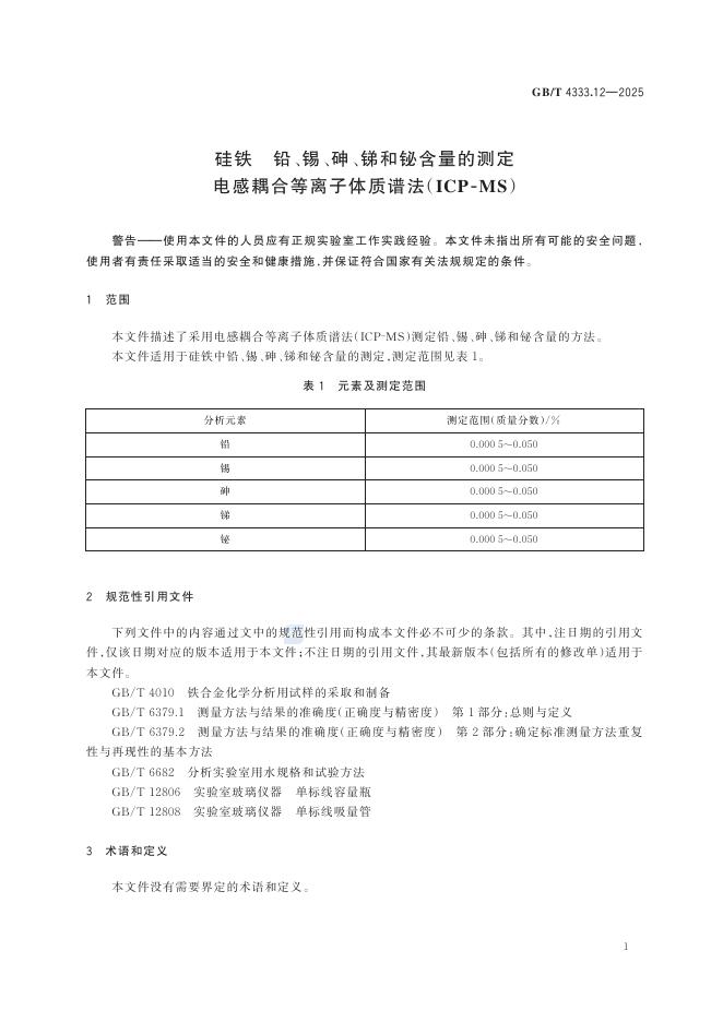 GB/T 4333.12-2025 硅铁 铅、锡、砷、锑和铋含量的测定 电感耦合等离子体质谱法(ICP-MS)