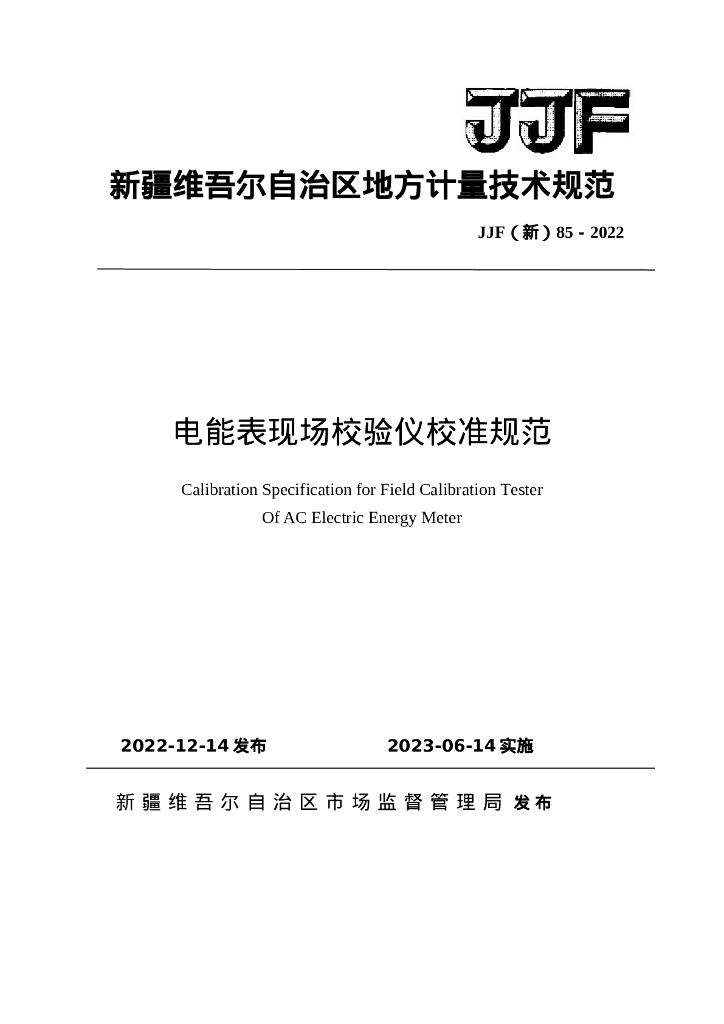 JJF(新)85-2022 电能表现场校验仪校准规范