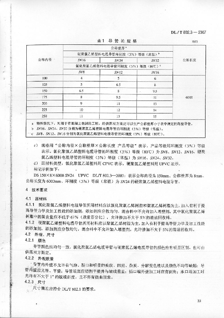 DL/T 802.3-2007 电力电缆用导管技术条件 第3部分:氯化聚氯乙烯及硬聚氯乙烯塑料电缆导管
