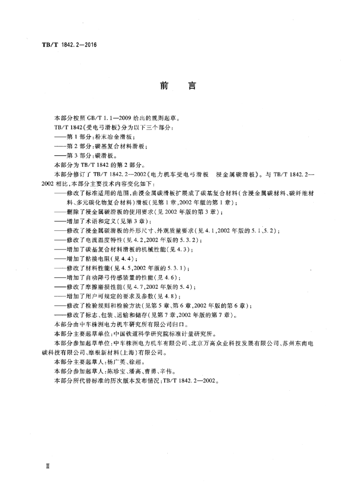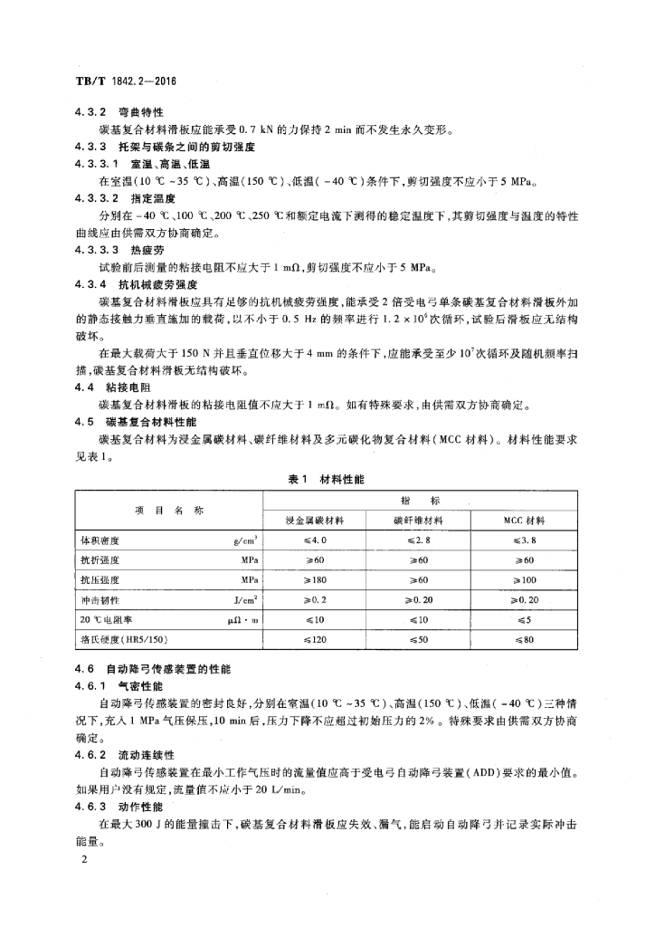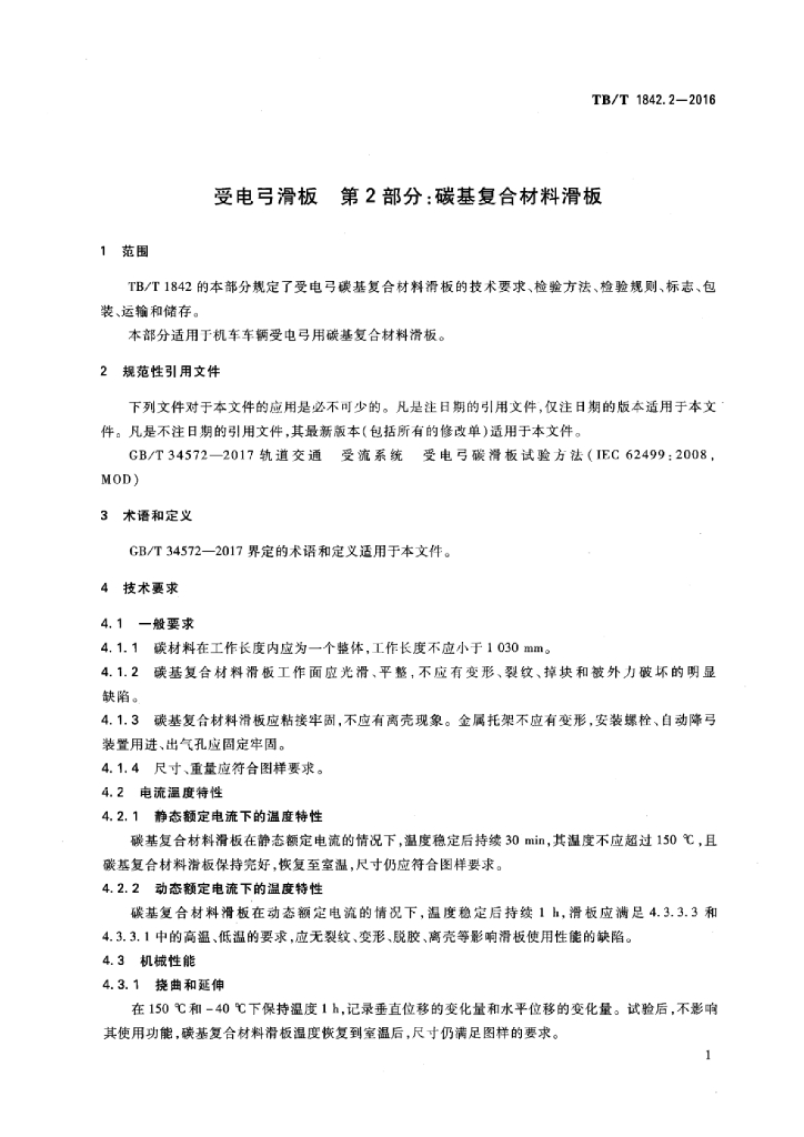 TB/T 1842.2-2016 受电弓滑板 第2部分:碳基复合材料滑板