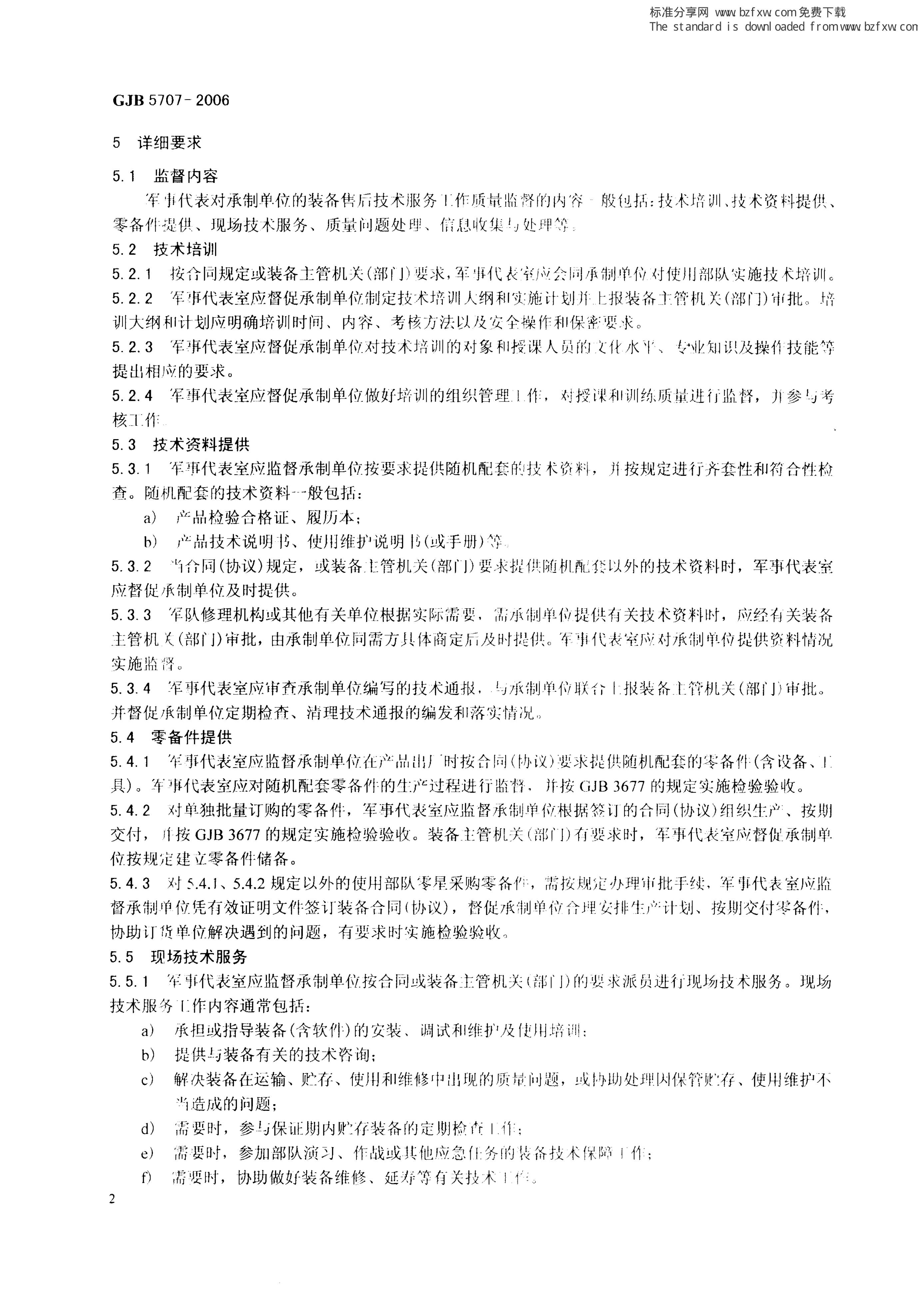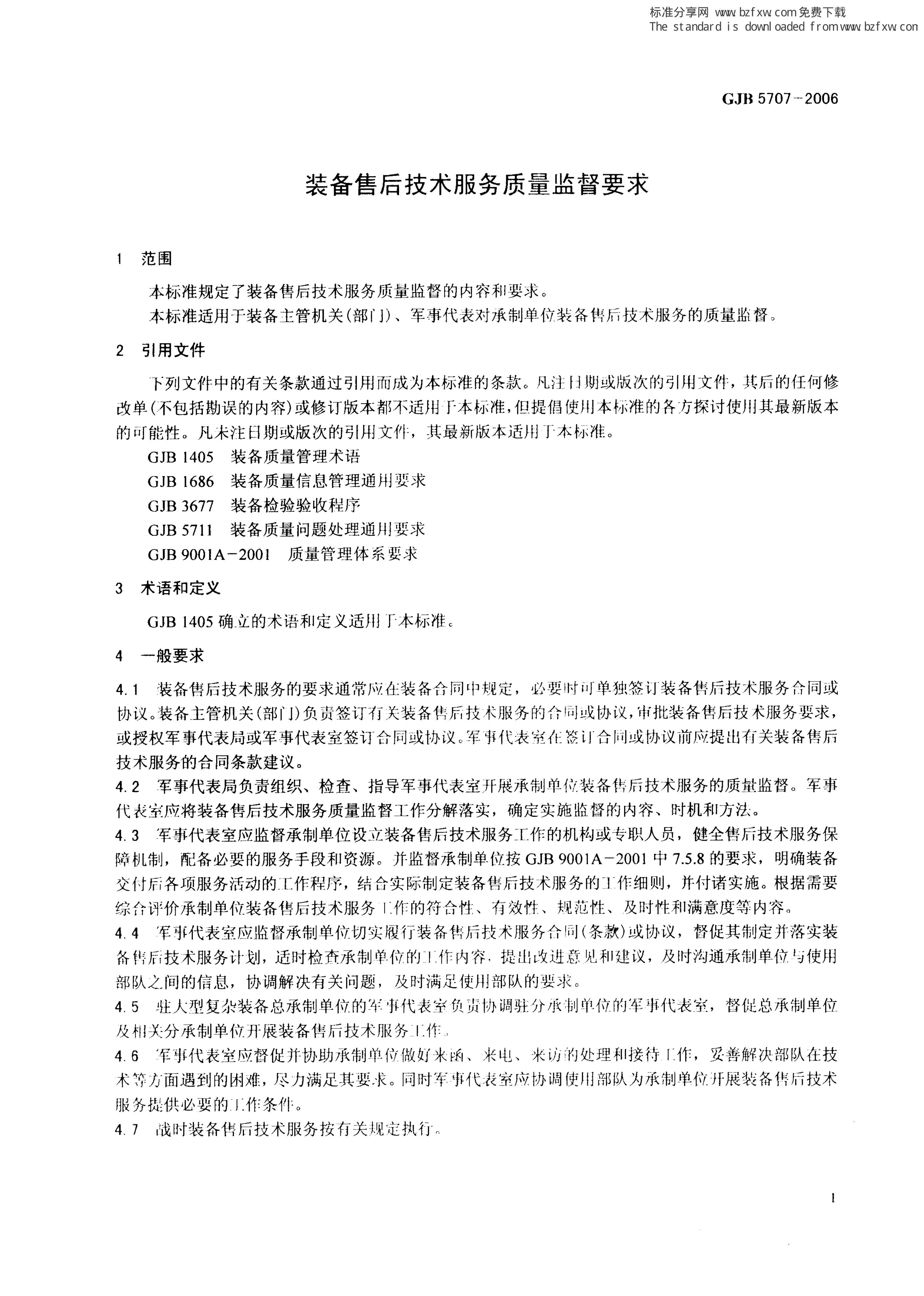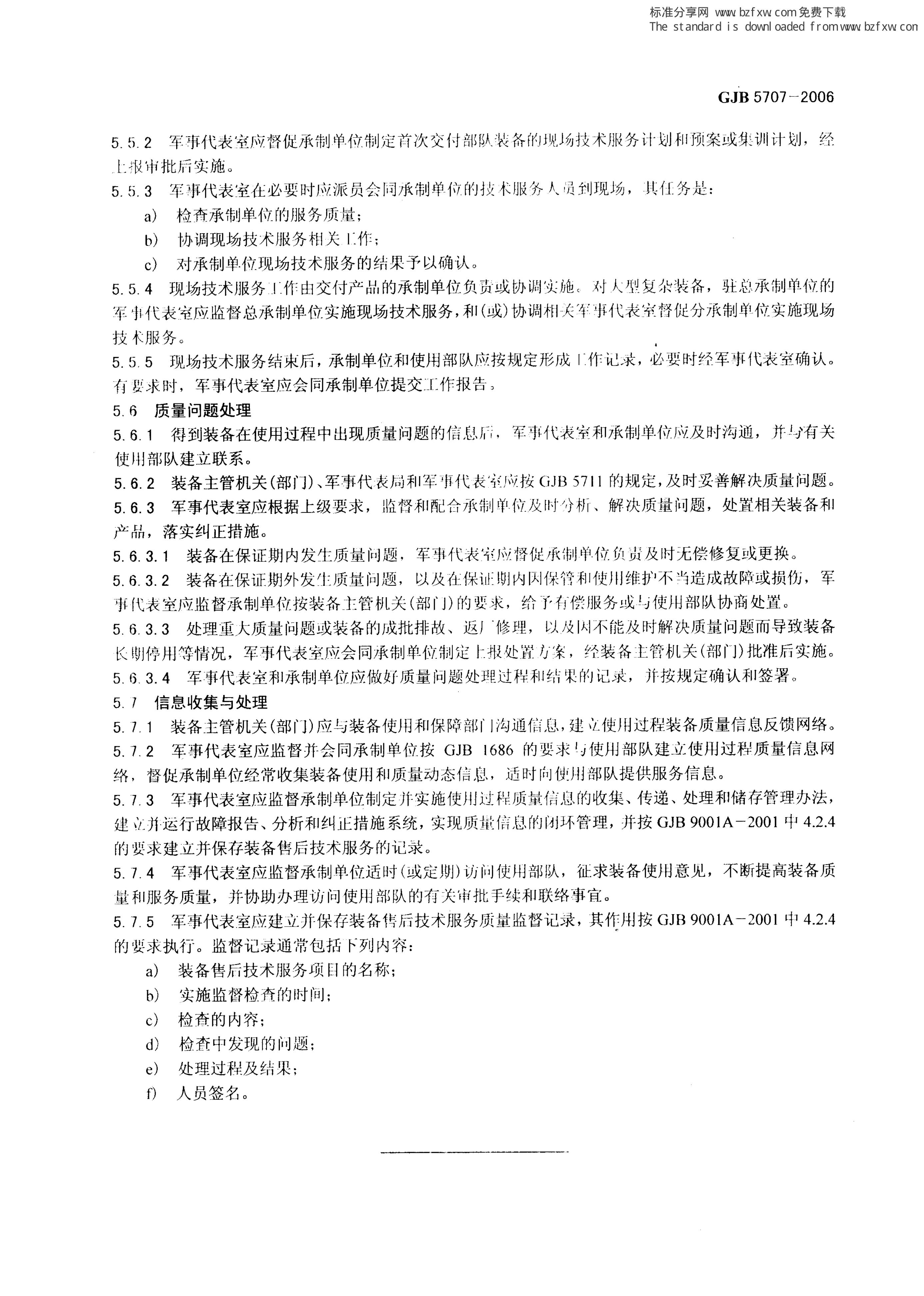 GJB 5707-2006 装备售后技术服务质量监督要求