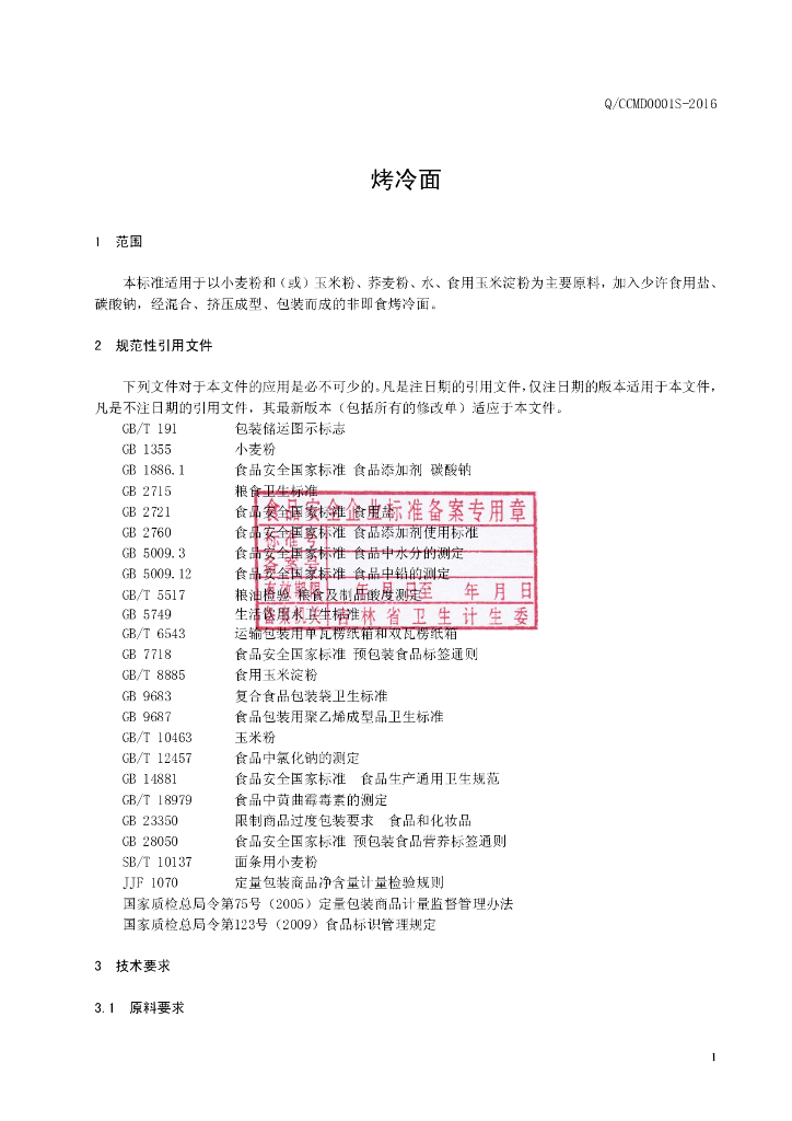Q/CCMD 0001S-2016 长春明东食品厂 烤冷面