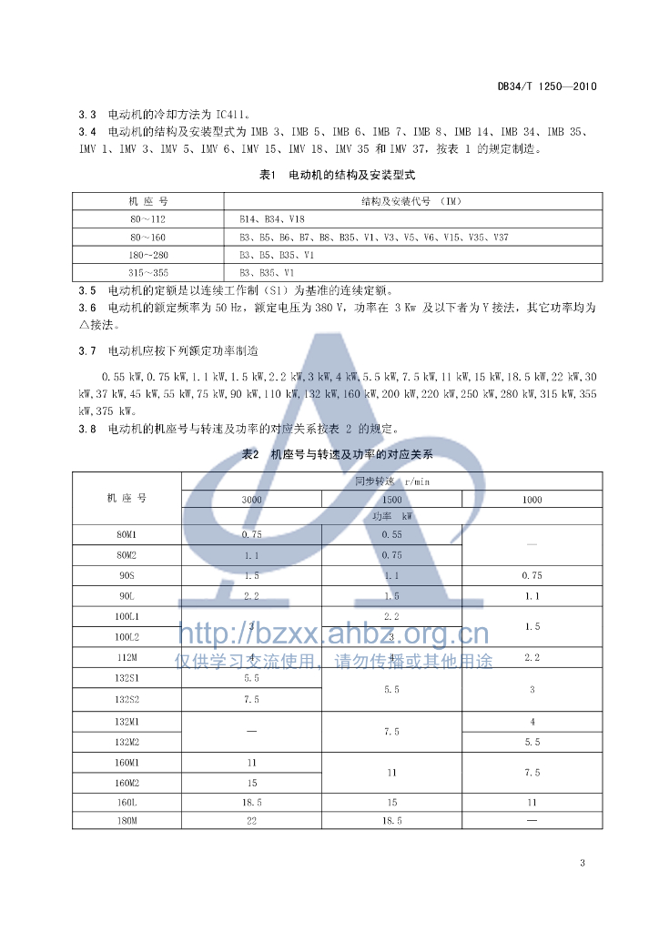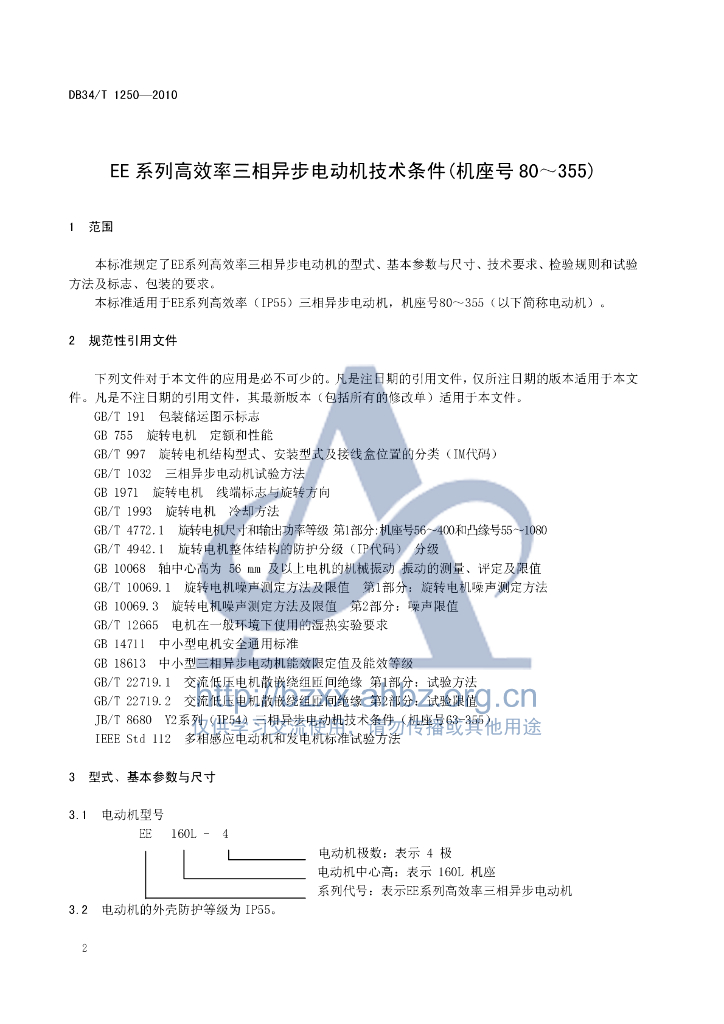 DB34/T 1250-2010 EE系列高效率三相异步电动机技术条件(机座号80~355)