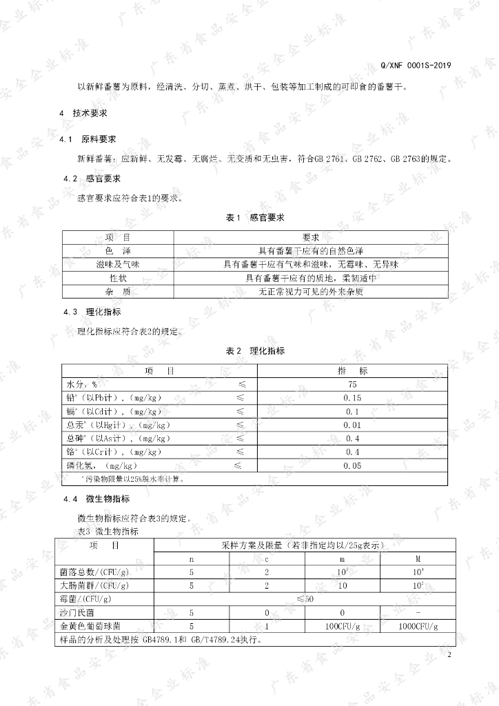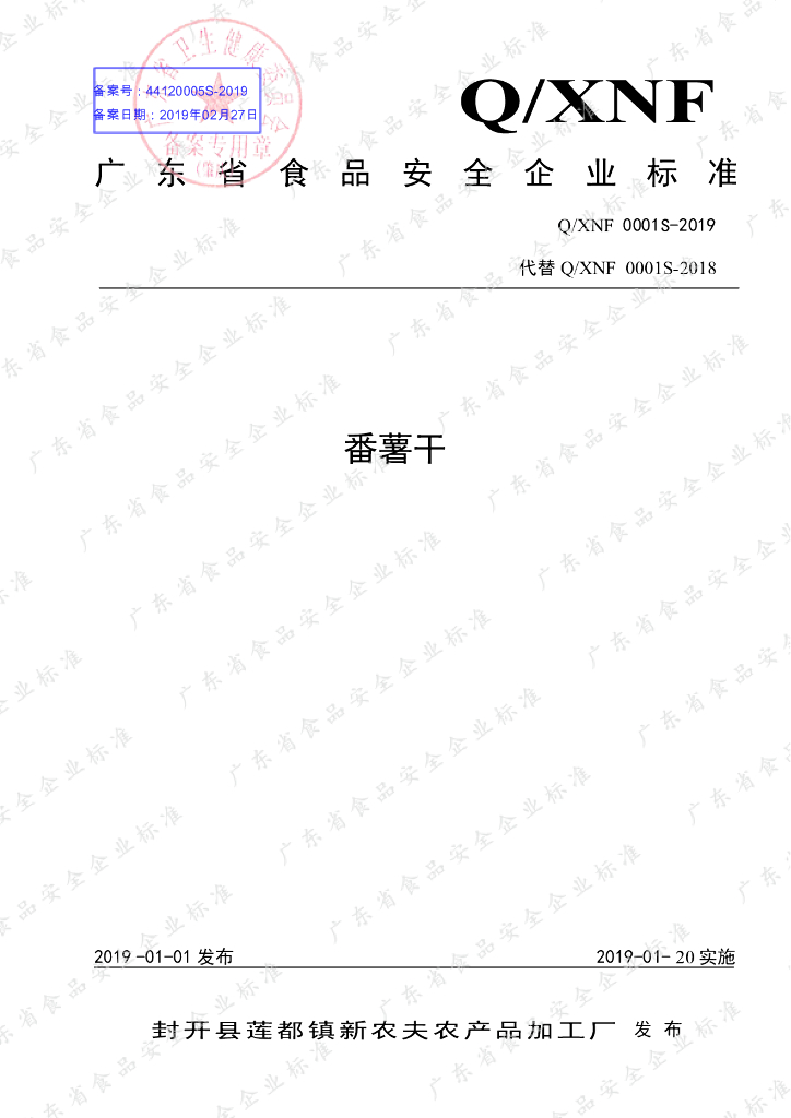 Q/XNF 0001S-2019 番薯干