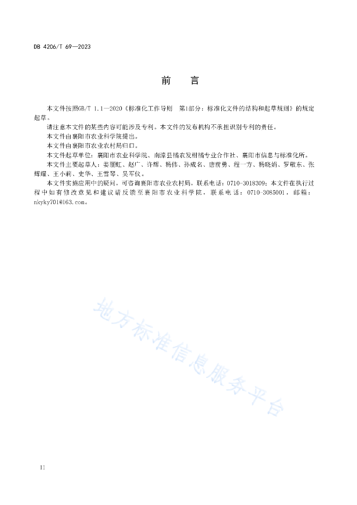 襄阳市农业科学院、南漳县橘农发柑橘专业合作社、襄阳市信息与标准化所
