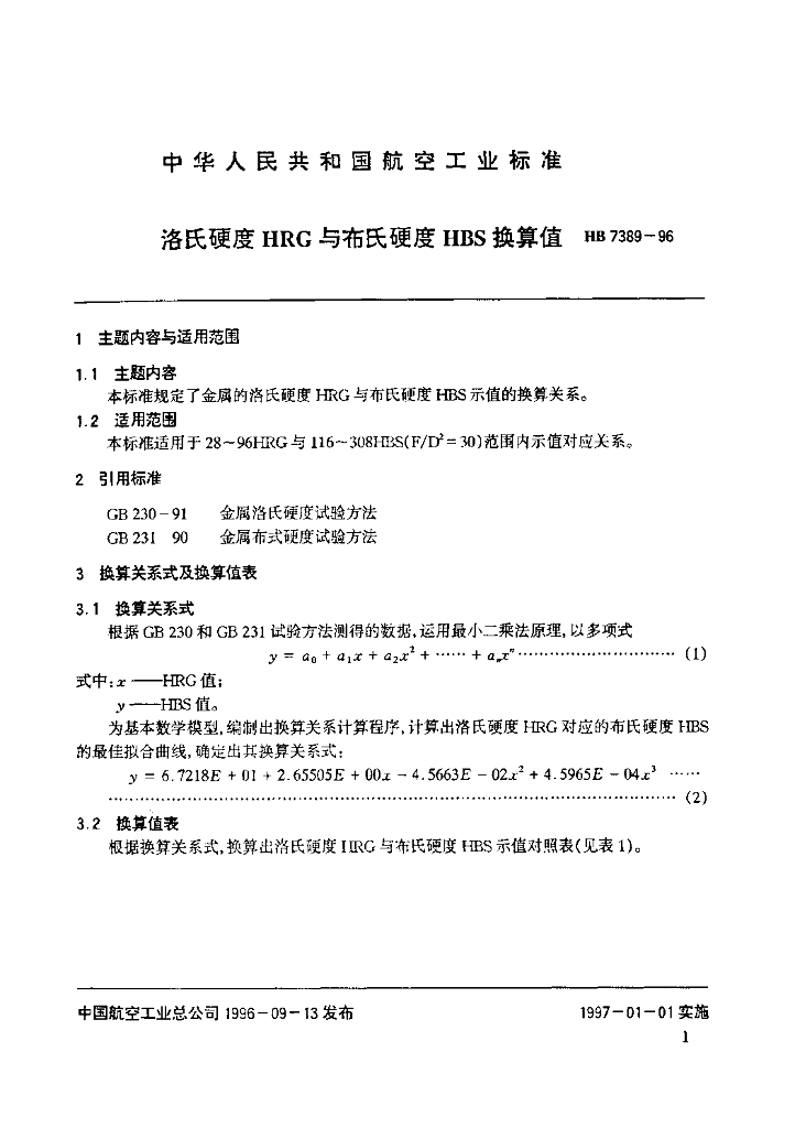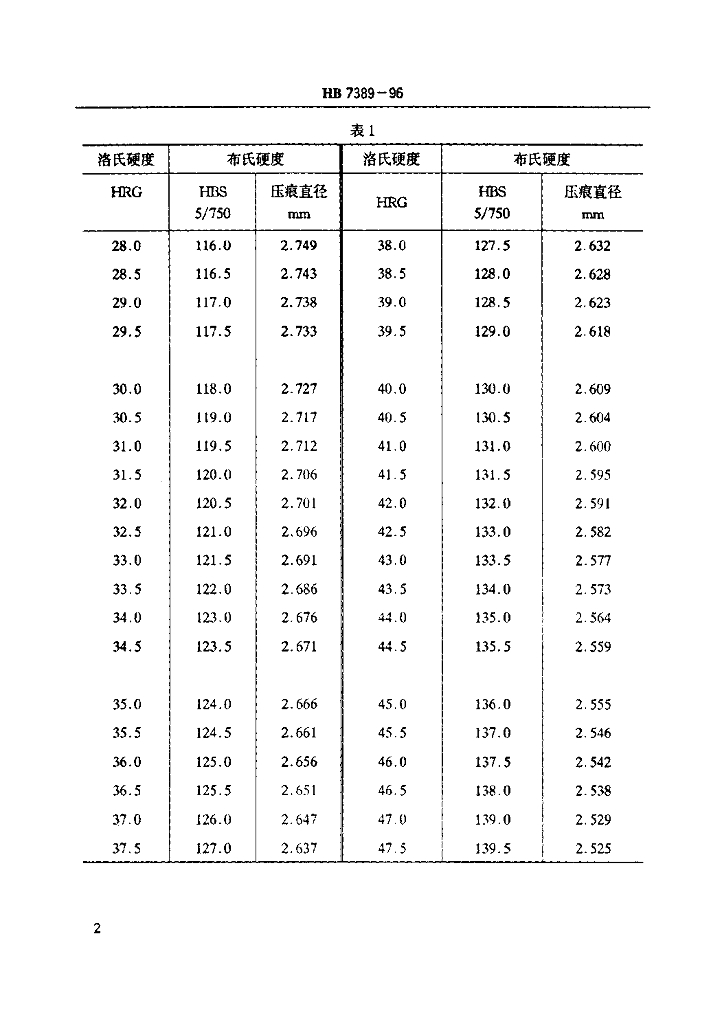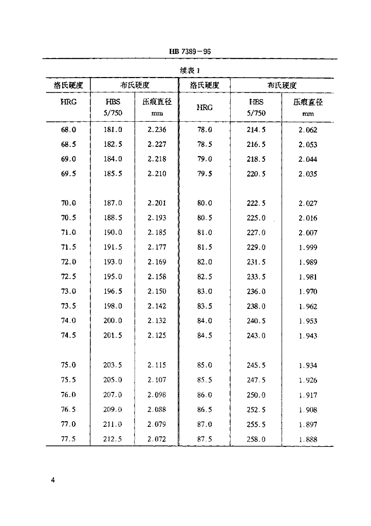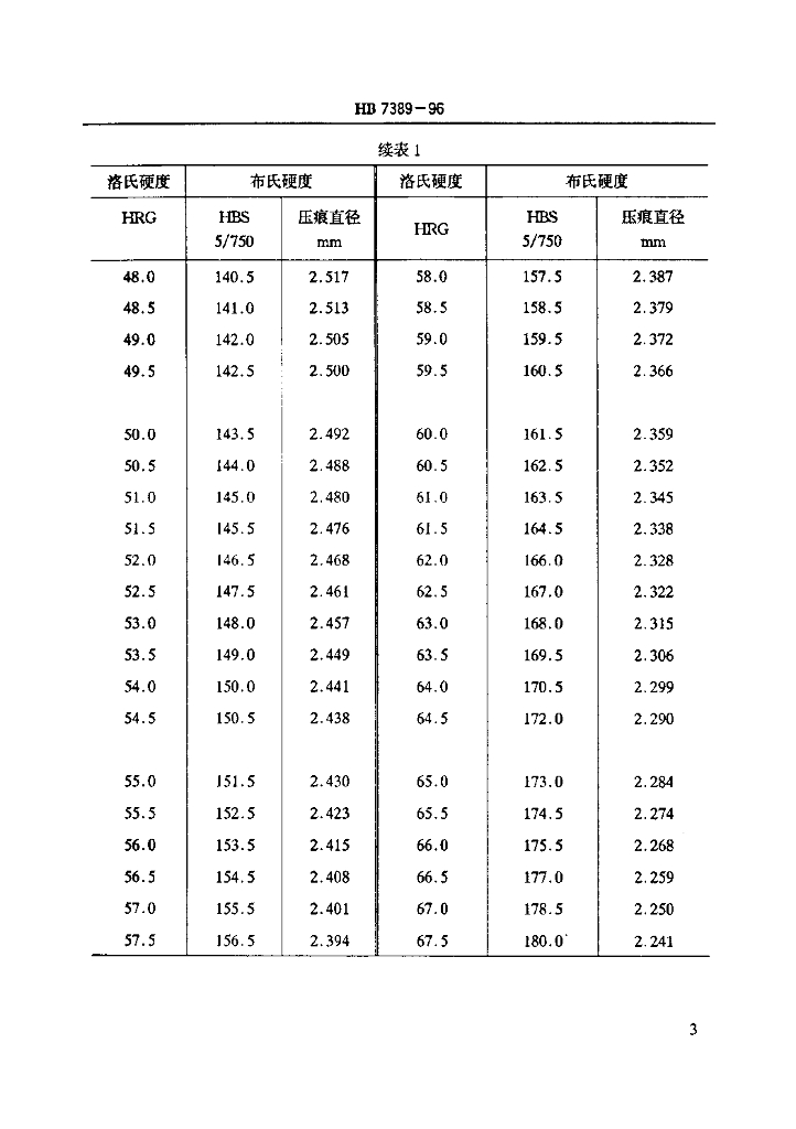HB 7389-1996 洛氏硬度HRG与布氏硬度HBS换算值