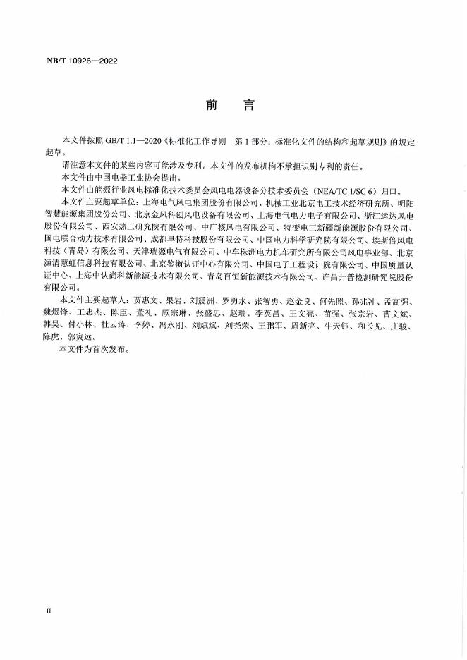 上海电气风电集团股份有限公司、机械工业北京电工技术经济研究所、明阳智慧能源集团股份公司、北京金风科创风电设备有限公司、上海电气电力电子有限公司、浙江运达风电股份有限公司、西安热工研究院有限公司、中旷核风电有限公司、特变电工新疆新能源股份有限公司、国电联合动力技术有限公司、成都阜特科技股份有限公司、中国电力科学研究院有限公司、埃斯倍风电科技(青岛)有限公司、天津瑞源电气有限公司、中车株洲电力机车研究所有限公司风电事业部、北京源清慧虹信息科技有限公司、北京鉴衡认证中心有限公司、中国电子工程设计院有限公司、中国