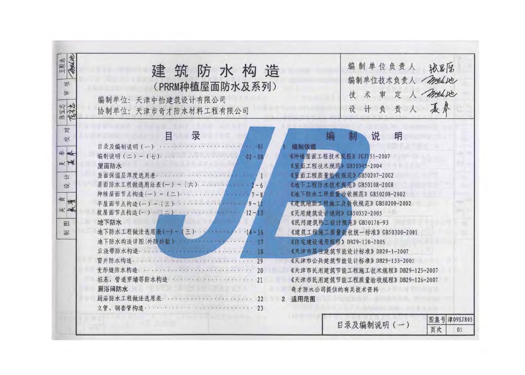 津09SJ805 建筑防水构造(PRRM种植屋面及防水系列)图集